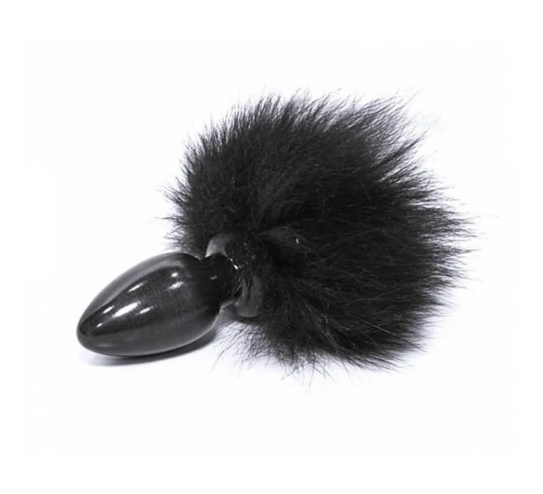 —Анальная пробка Wild Lust с черным заячьим хвостом, 4 см