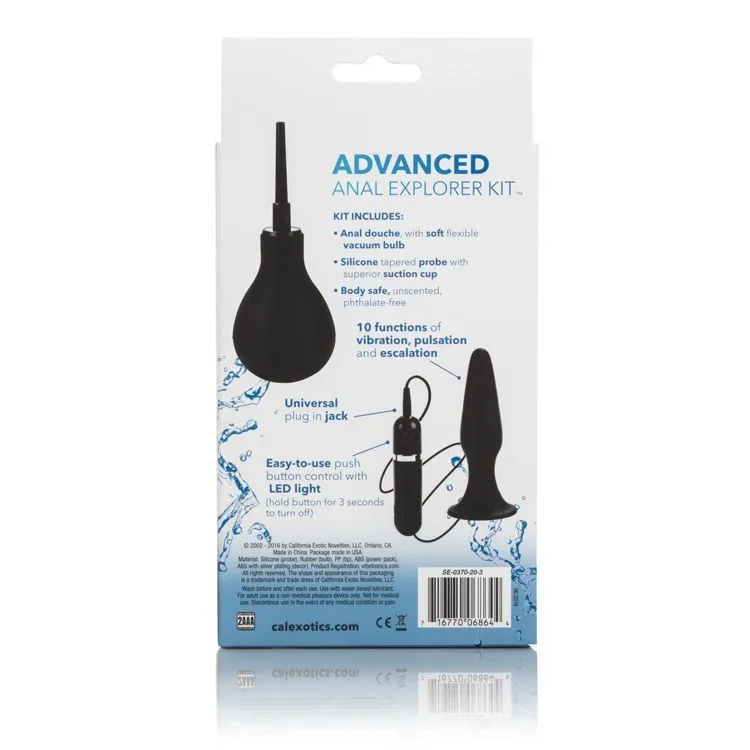 Набор Anal Explorer Kit Advanced содержит в себе все необходимое для увлекательного и приятного исследования анальных удовольствий. В набор входит анальный душ и вибропробка с проводным пультом управления. Анальный душ позаботится о Вашей гигиене и поможет подготовиться к игре, чтобы ничто не могло помешать Вам получить желаемое наслаждение. После душа используйте силиконовую пробку, выбрав нужный режим вибрации в зависимости от своих предпочтений, но, в любом случае, Вам будут гарантированы яркие ощущения от стимуляции. Кончик игрушки достаточно узкий, поэтому ее введение будет приятным и комфортным. Также в основании пробки есть присоска, благодаря которой Вы сможете закрепить ее на любой ровной и твердой поверхности. Используйте этот набор в одиночку или в паре для исследования всех своих тайных фантазий и поиска новых ощущений.