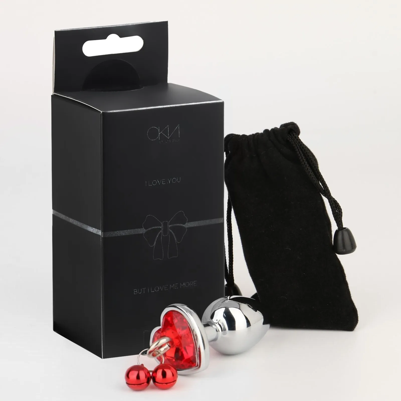 —Анальная пробка Оки-Чпоки, с бубенчиками, кристалл красный, в форме сердца