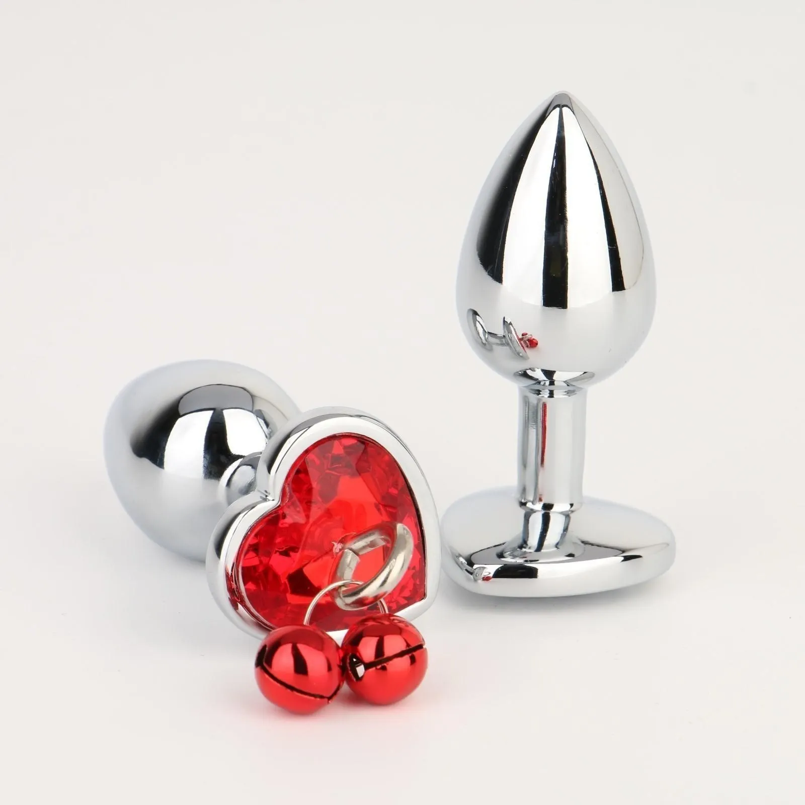 Анальная пробка Оки-Чпоки, с бубенчиками, кристалл красный, в форме сердца