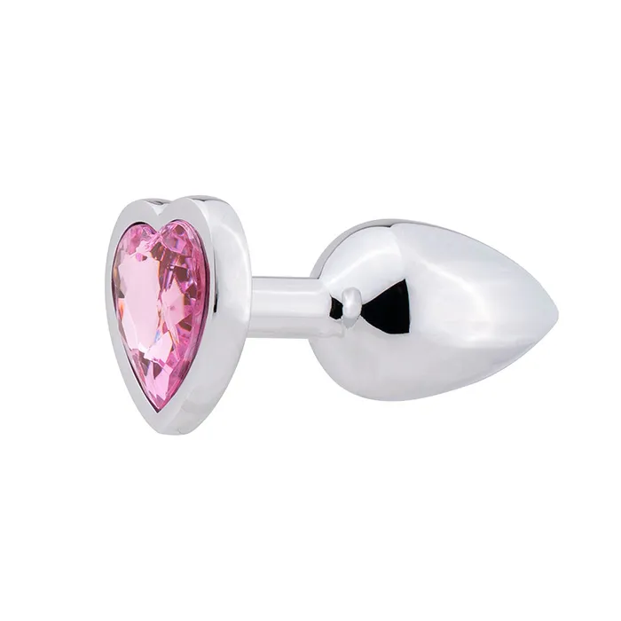 Анальная пробка PinkRabbit Eli металлическая с розовым кристаллом, размер S, серебряная