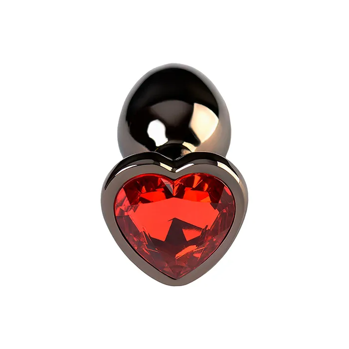 Анальная пробка PinkRabbit Shade металлическая с красным кристаллом-сердцем, размер M, темн серебро