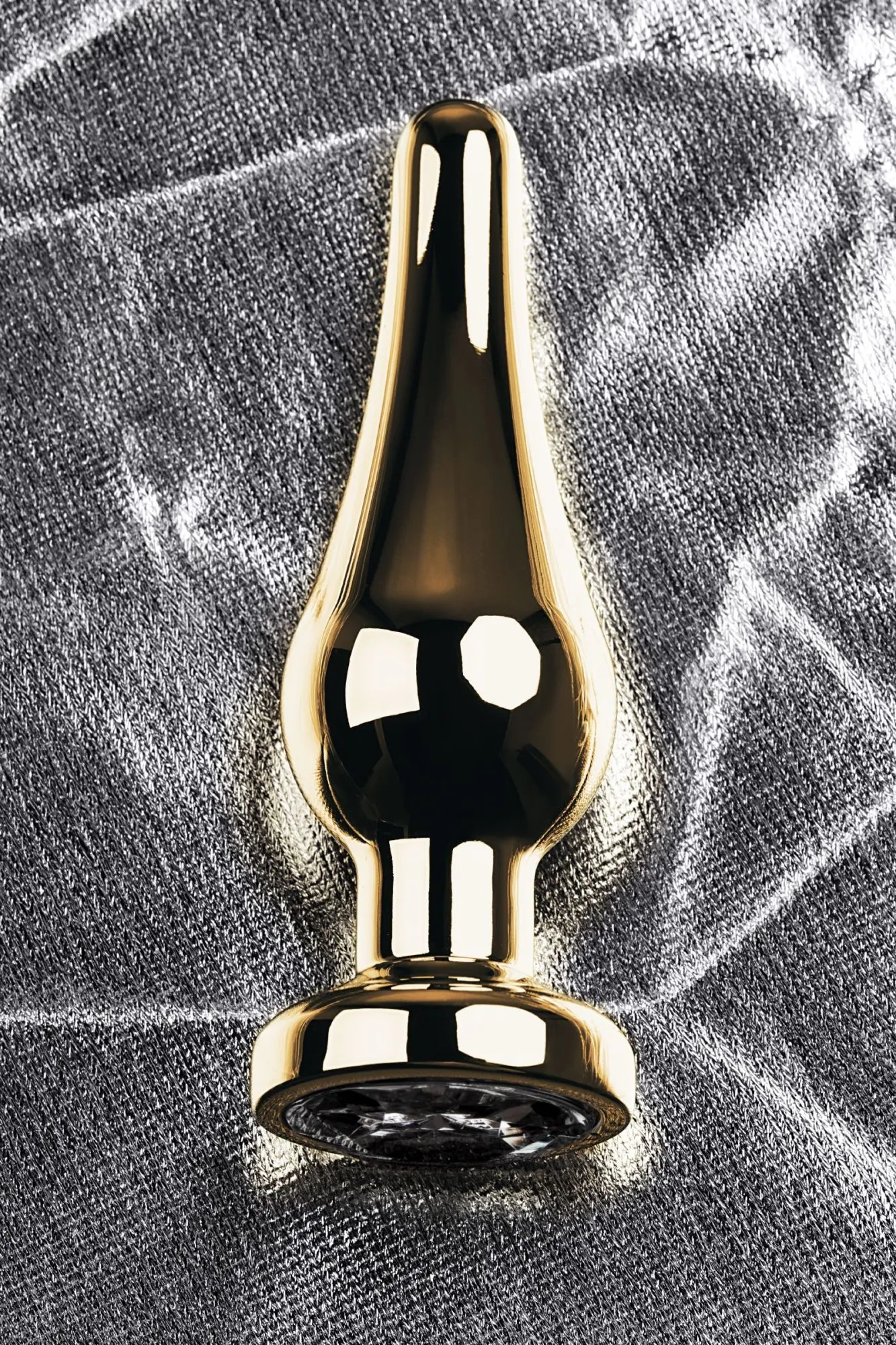 Анальная втулка Metal by TOYFA, металл, золотая, с кристаллом цвета алмаз