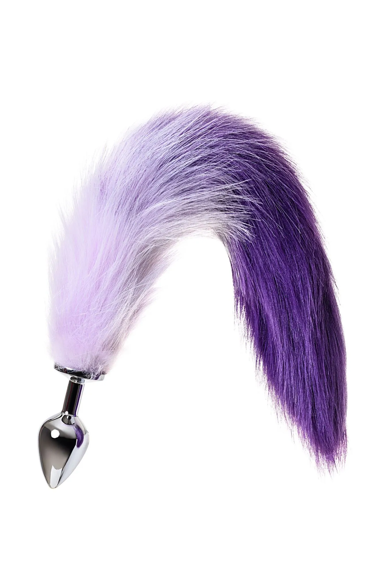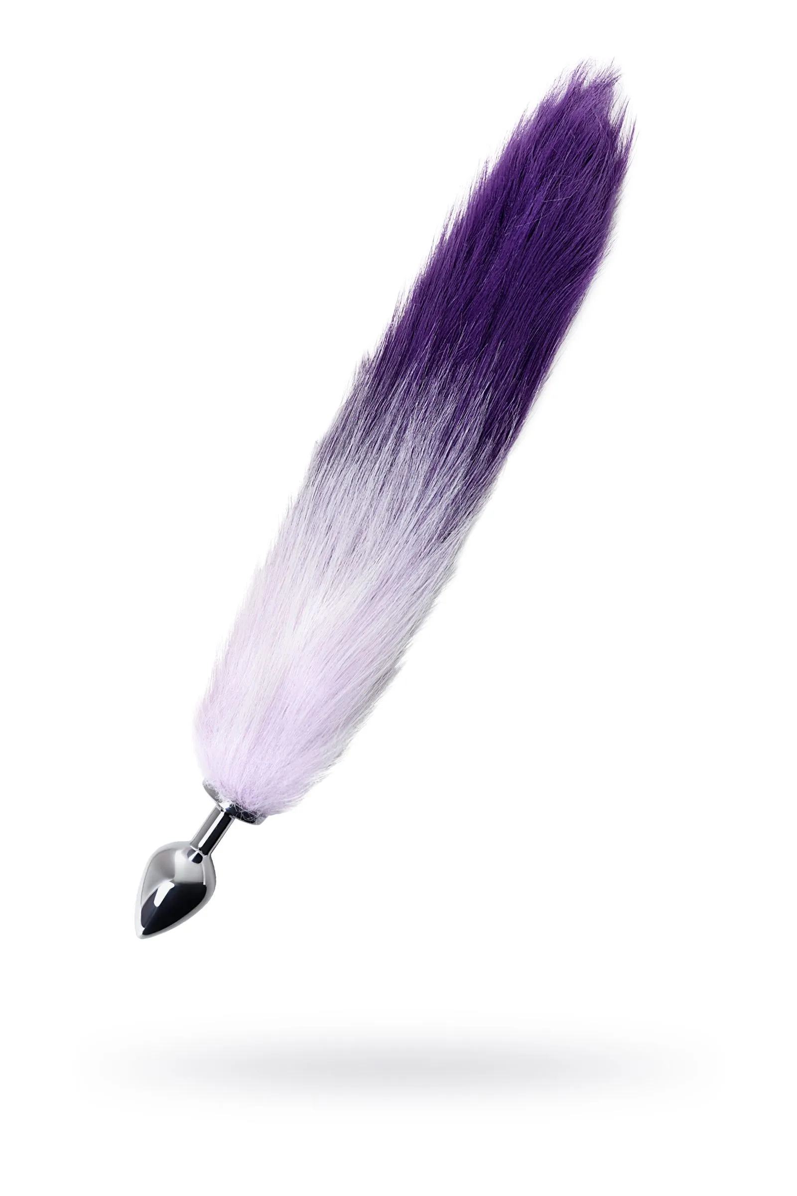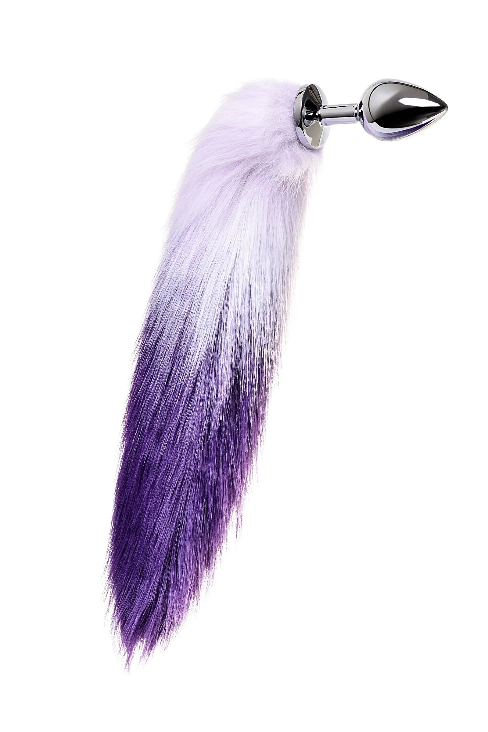 Анальная втулка Metal by TOYFA с бело-фиолетовым хвостом, металл, серебряная, 45 см, Ø 3,3 см