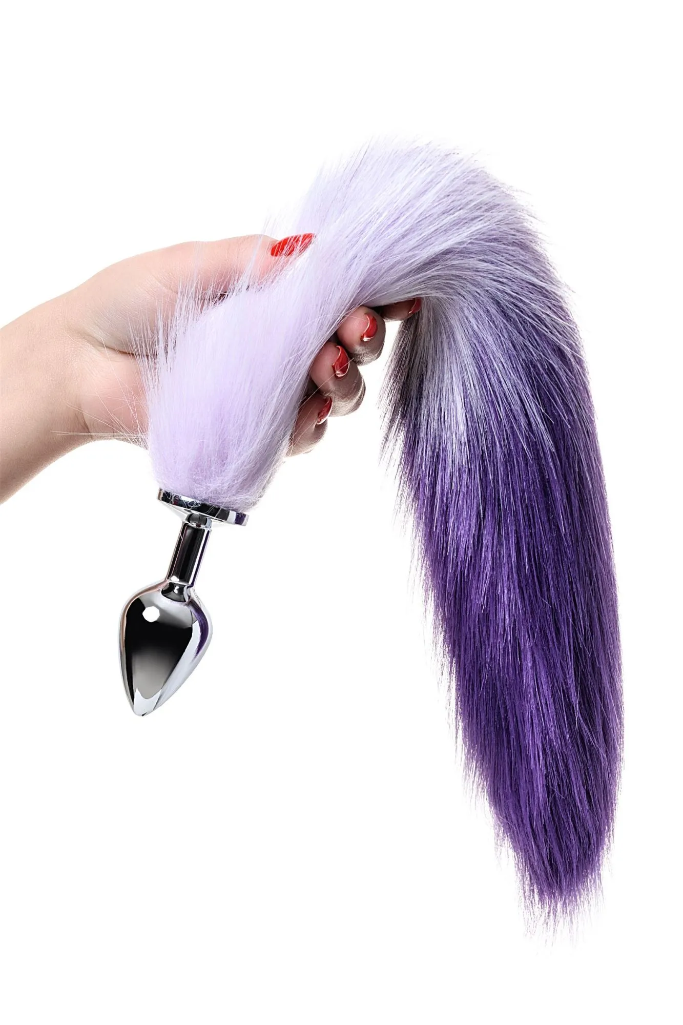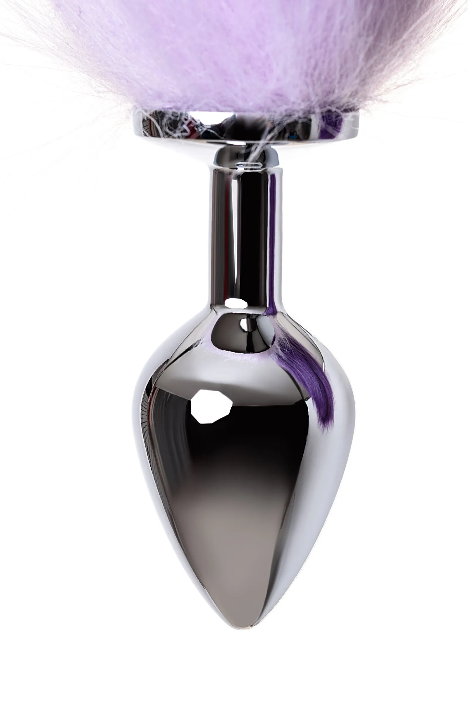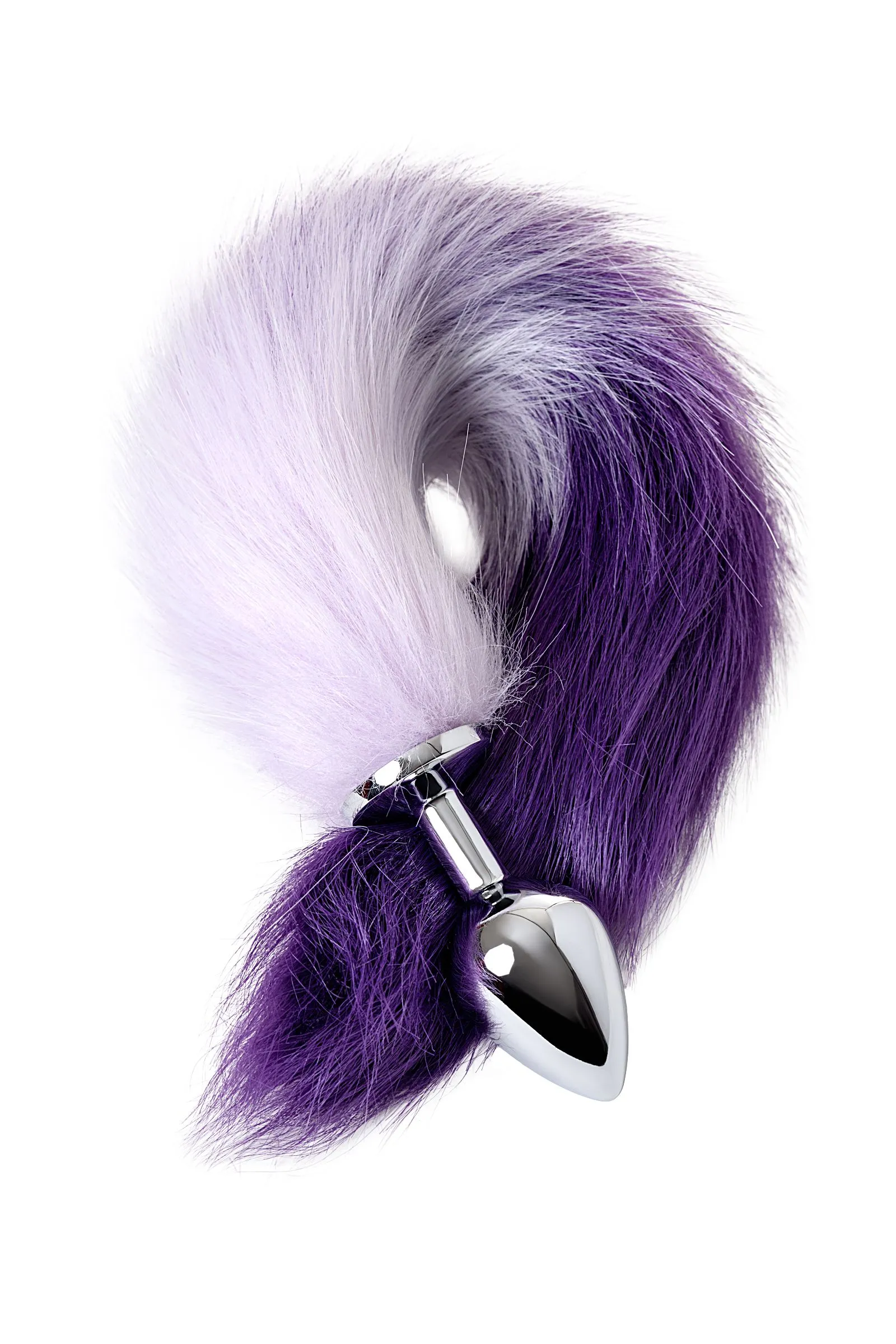 Анальная втулка Metal by TOYFA с бело-фиолетовым хвостом, металл, серебряная, 45 см, Ø 3,3 см