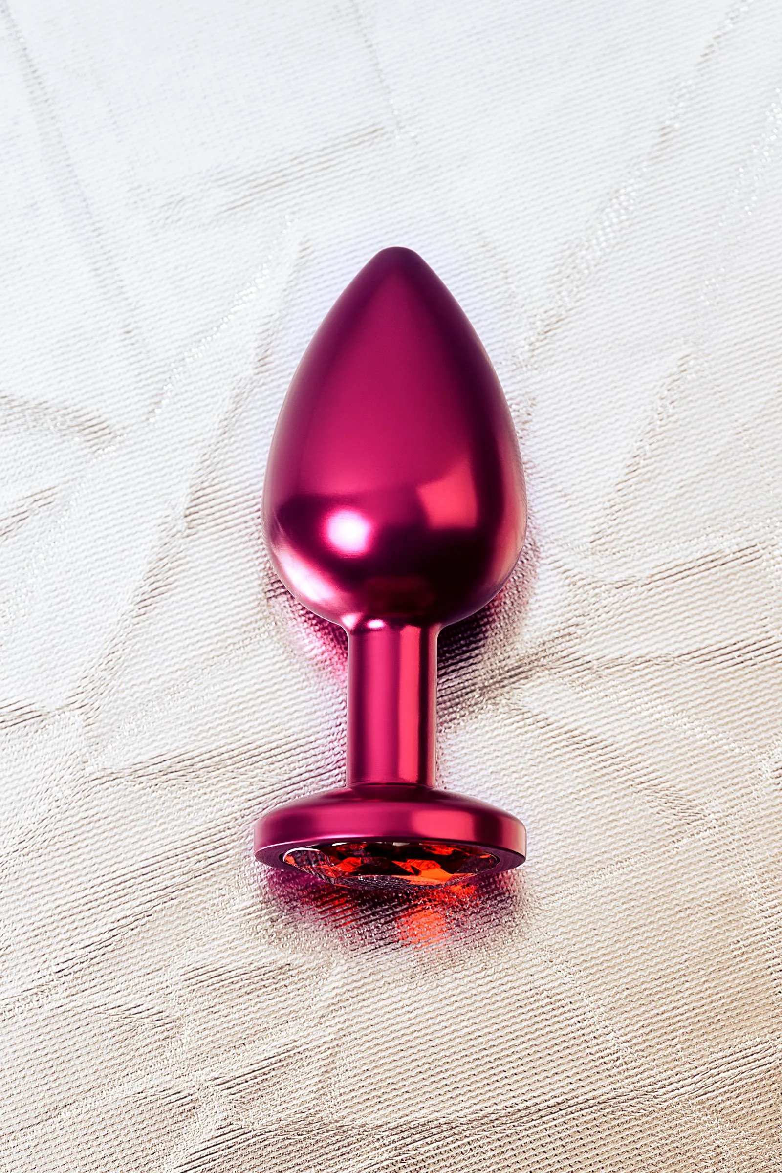 Анальная втулка Metal by TOYFA, металл, красная, с красным кристаллом, 8,2 см, Ø3,4 см, 85 г