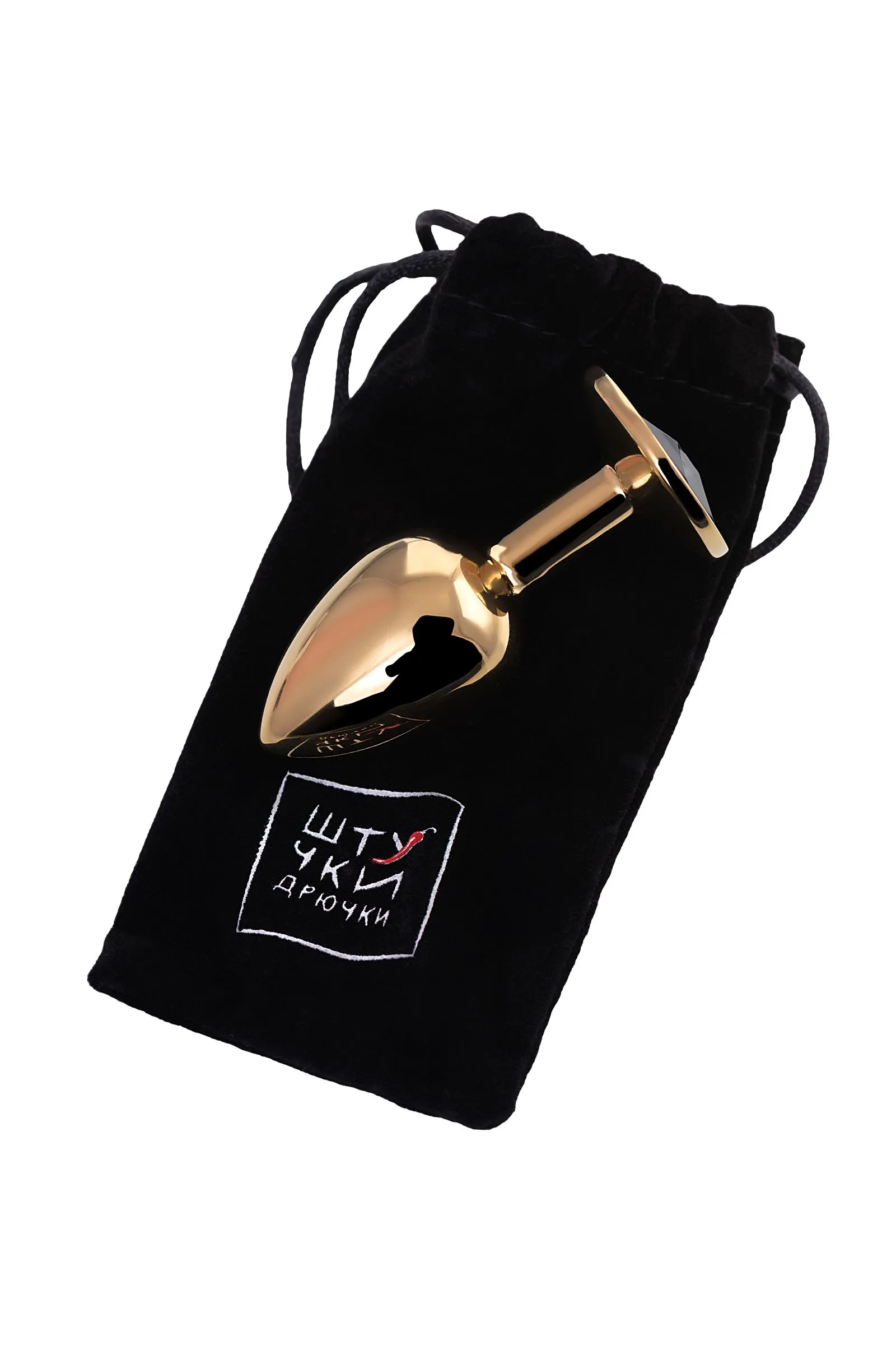 —Анальная втулка Штучки-Дрючки, металл, золотая, с чёрным кристаллом, 7 см, Ø 2,8 см, 50 г