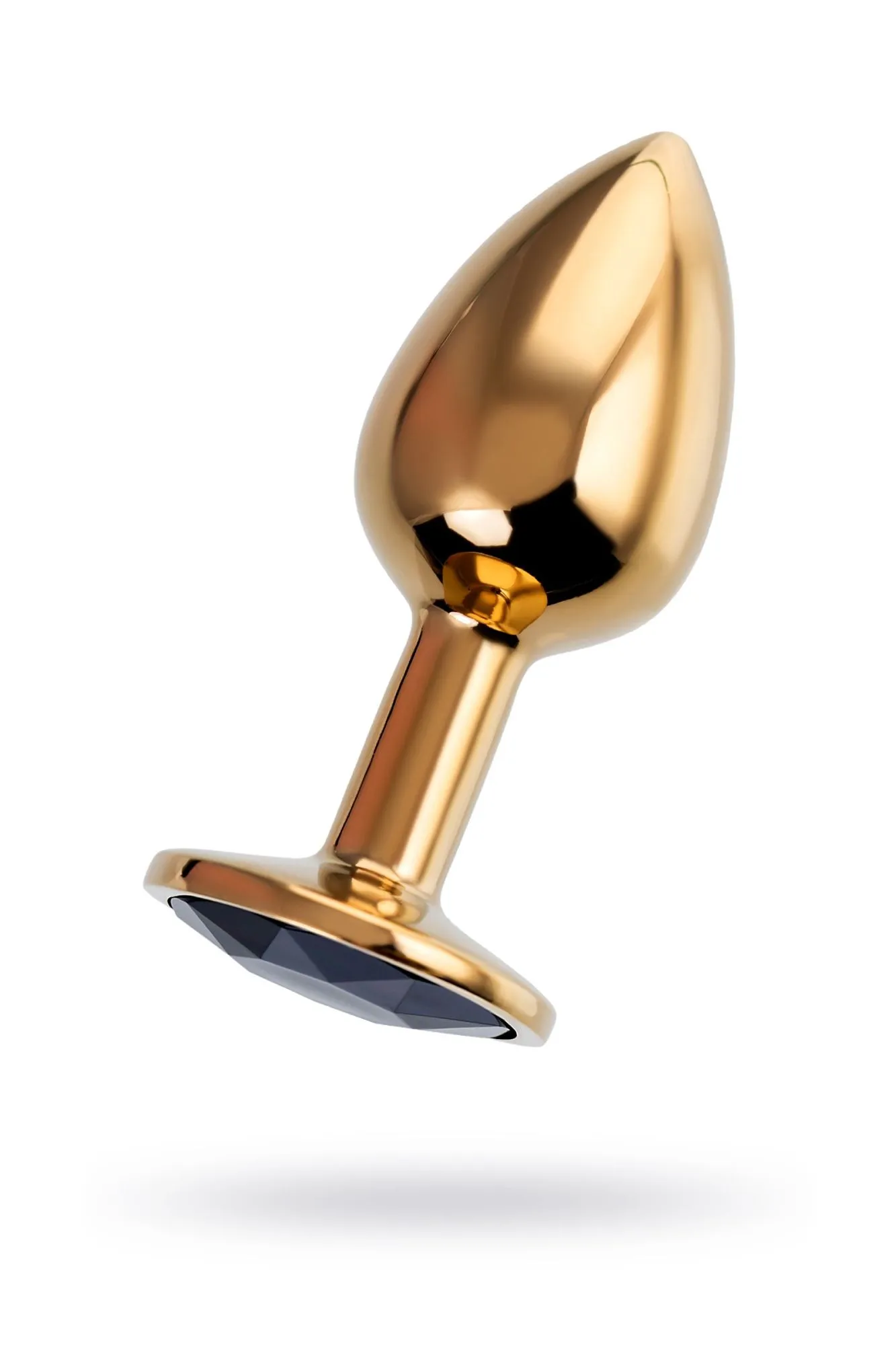 Анальная втулка Штучки-Дрючки, металл, золотая, с чёрным кристаллом, 7 см, Ø 2,8 см, 50 г