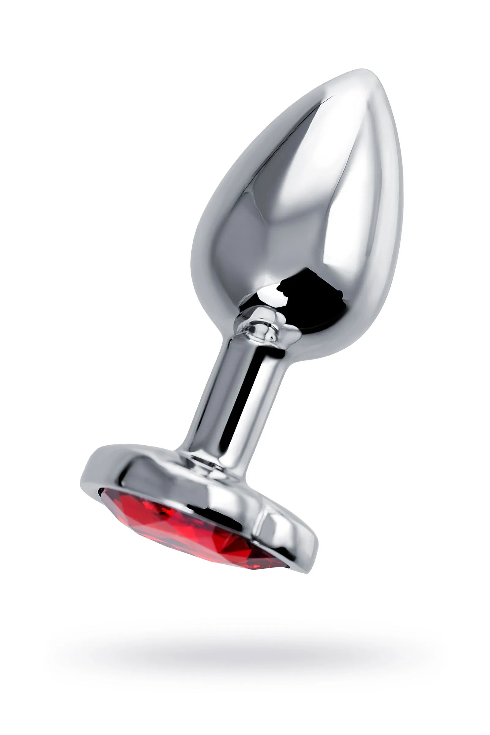 —Анальная втулка Штучки-Дрючки, металл, серебряная, с красным кристаллом, 7 см, Ø 2,7 см, 50 г