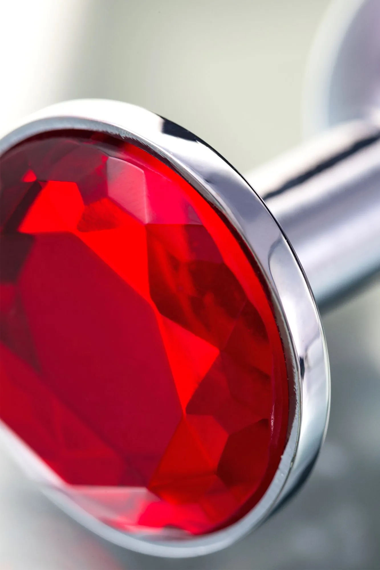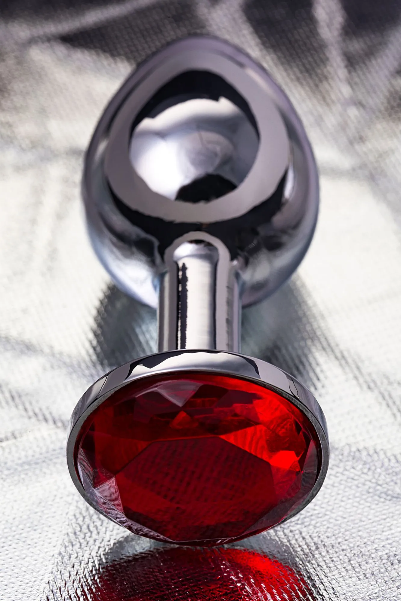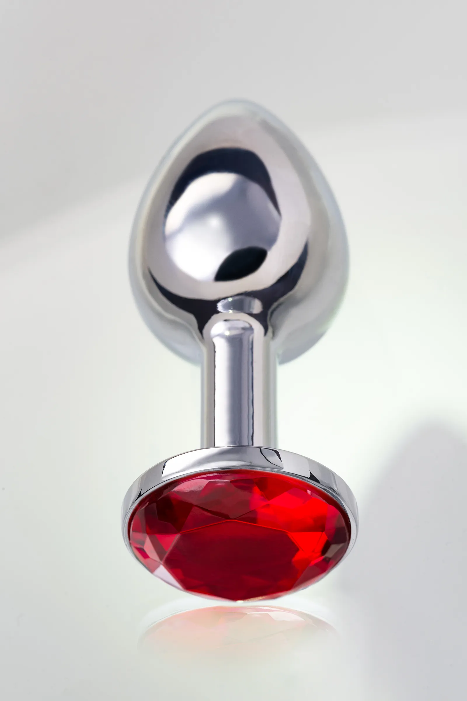 —Анальная втулка Metal by TOYFA, металл, серебряная, с рубиновым кристаллом, 7,5 см, Ø 3 см, 145 г