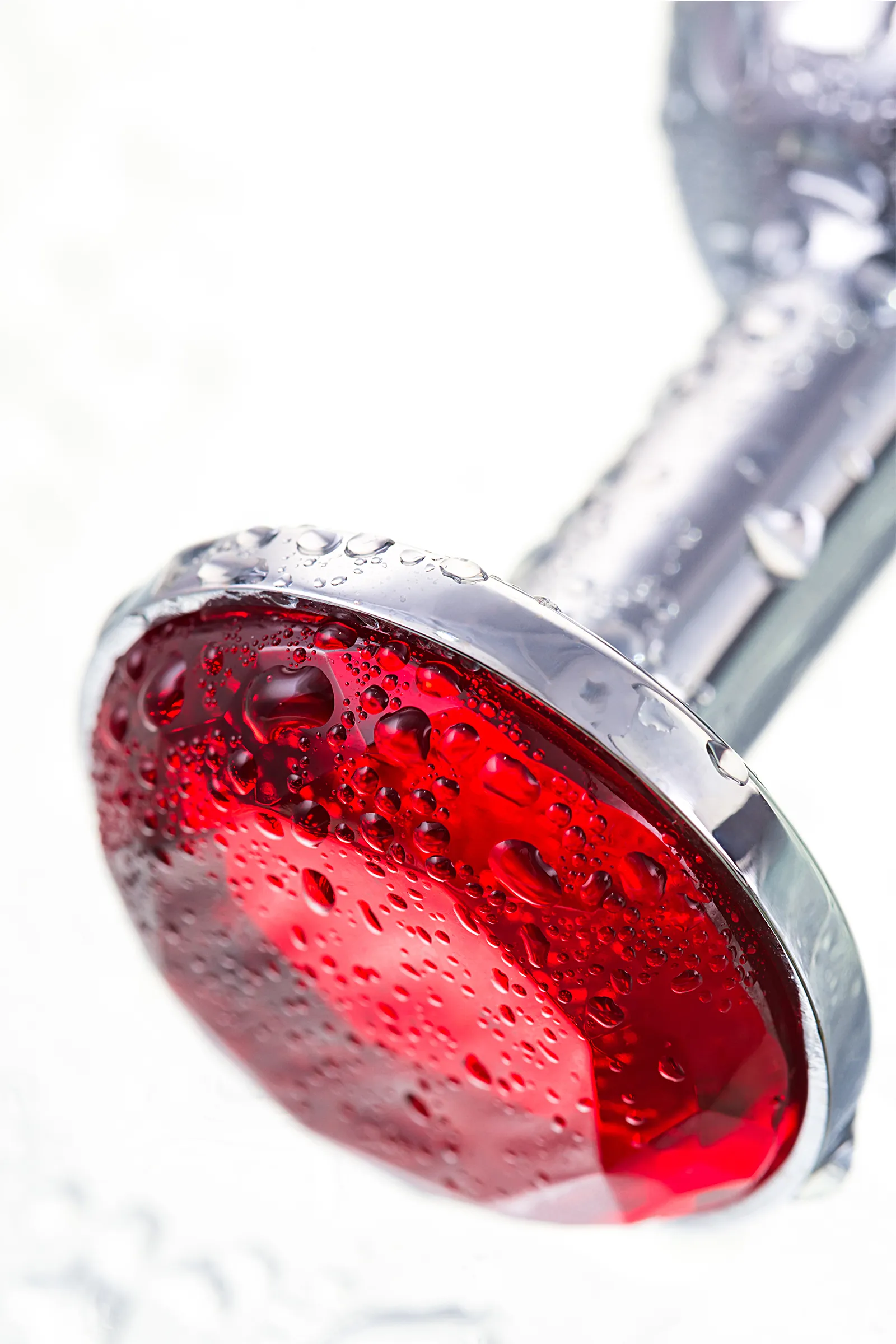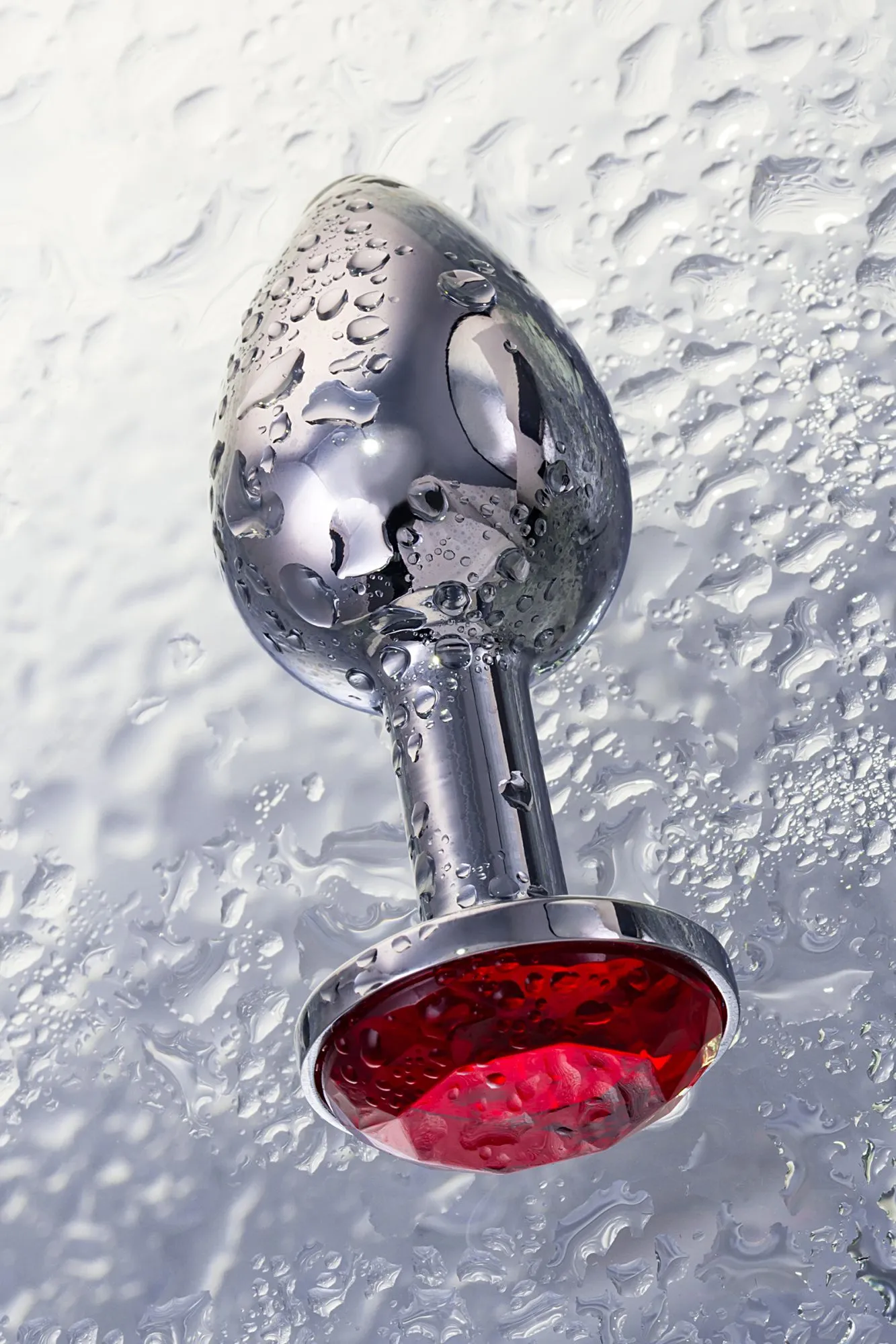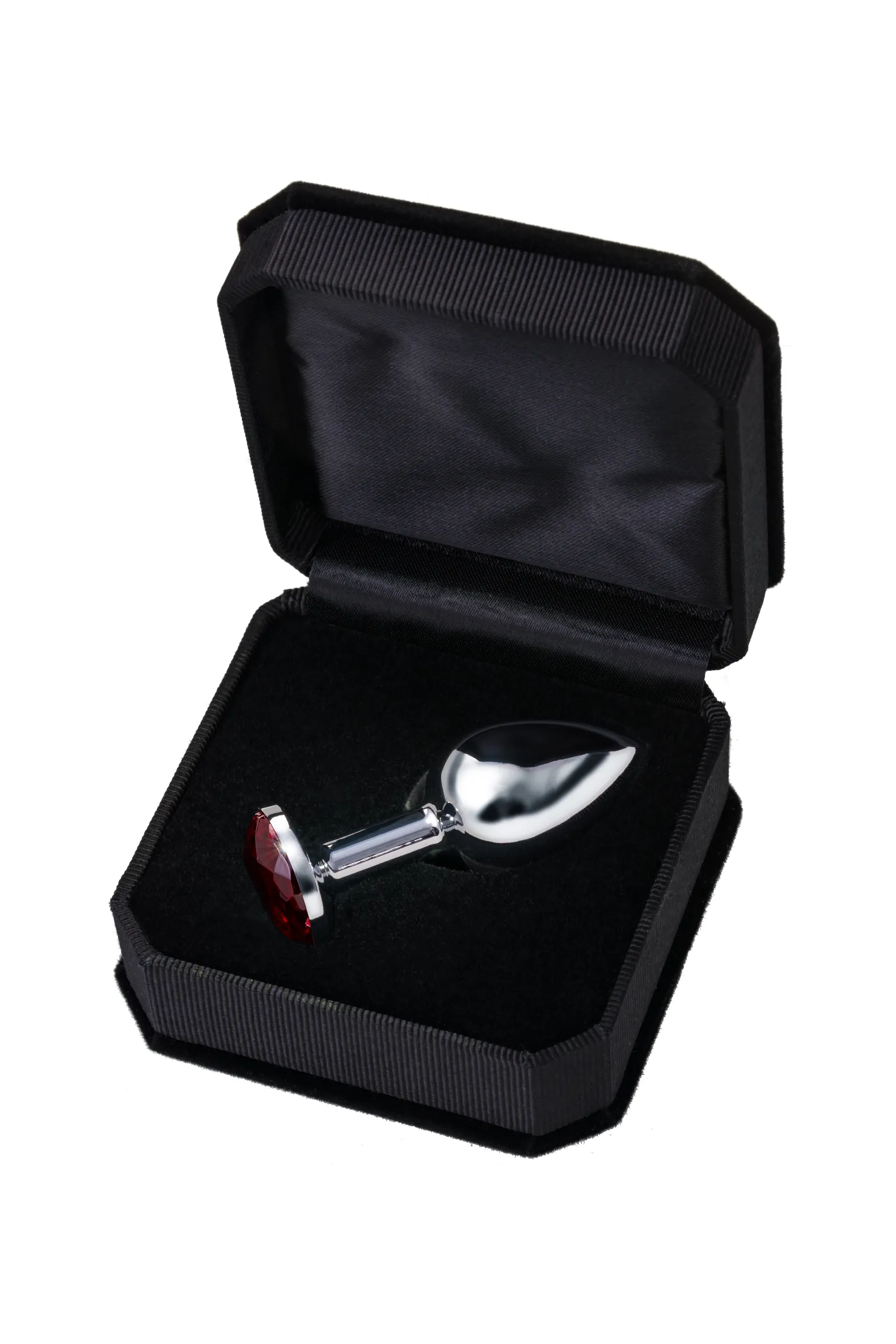 —Анальная втулка Metal by TOYFA, металл, серебряная, с рубиновым кристаллом, 7,5 см, Ø 3 см, 145 г