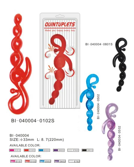 Анальный стимулятор голубого цвета оригинальной формы в красивой упаковке. Имеет пять звеньев разных по диаметру. Изгиб в основании изделия, позволяет удобно удерживать игрушку во время стимуляции. Материал изготовления ПВХ. Общая длина 21 см, рабочая длина 13,5 см, максимальный диаметр 3 см, минимальный 1,5 см. Упаковка - блистер.