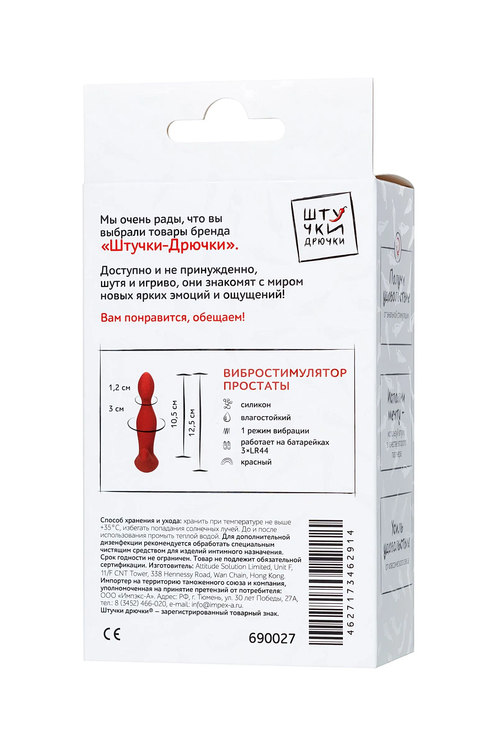 Обычные массажеры простаты рассчитаны на стандартную и скучную стимуляцию, но вибростимулятор «Штучки-Дрючки» не такой: Его гибкий ствол анатомически выверен и гарантирует комфортное, безболезненное введение. Слегка загнутый рельефный кончик активно массирует предстательную железу, а отросток в основании дополнительно задействует точку P и промежность, увеличивая эффективность массажа. Вибрация помогает расслабиться и получить еще больше удовольствия от стимуляции. Шаблонное удовольствие не для тебя? Возьми «Штучки-Дрючки» и играй в своем стиле.