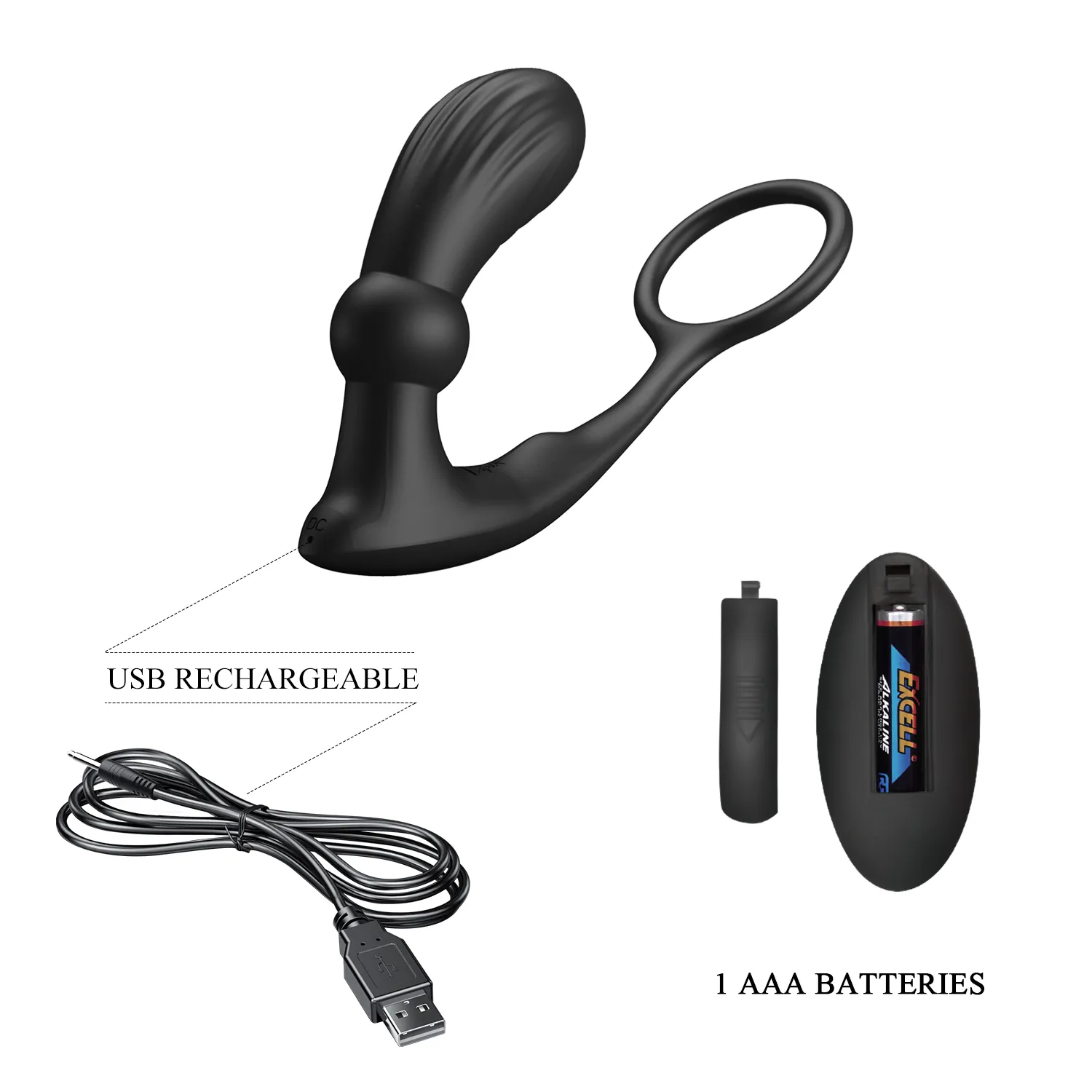 Это кольцо для члена с анальной пробкой, которой можно легко управлять с помощью пульта дистанционного управления. Комбинированные кольца надежно удерживают пенис и яички и могут эффективно поддерживать эрекцию. Анальная пробка с особым изогнутым дизайном имеет 12  режимов вибрации и 12 настроек пульсовой волны, обеспечивающих интенсивную стимуляцию заднего прохода. Пробка покрыта силиконом, который имеет приятную на ощупь текстуру. Беспроводное дистанционное управление. USB зарядка в комплекте, для пульта необходима 1 батарейка ААА (нет в комплекте).