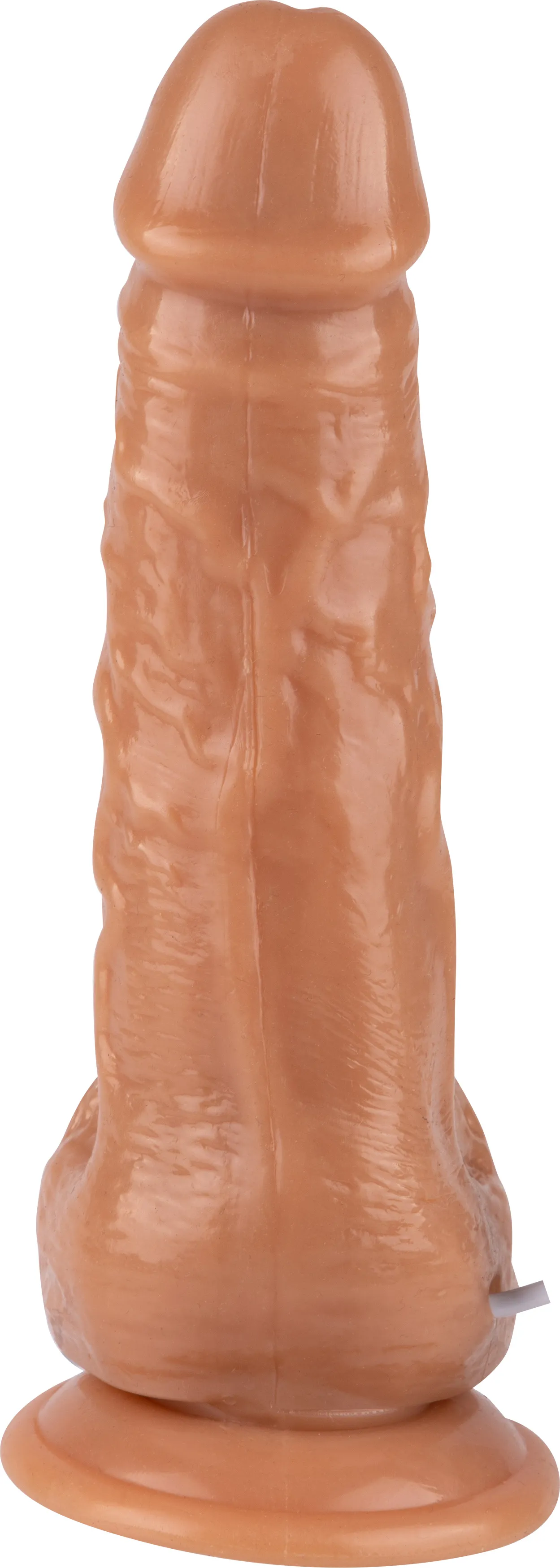 Секс игрушка в виде члена с мошонкой выполнена в реалистичной форме, имитирующей живую кожу.