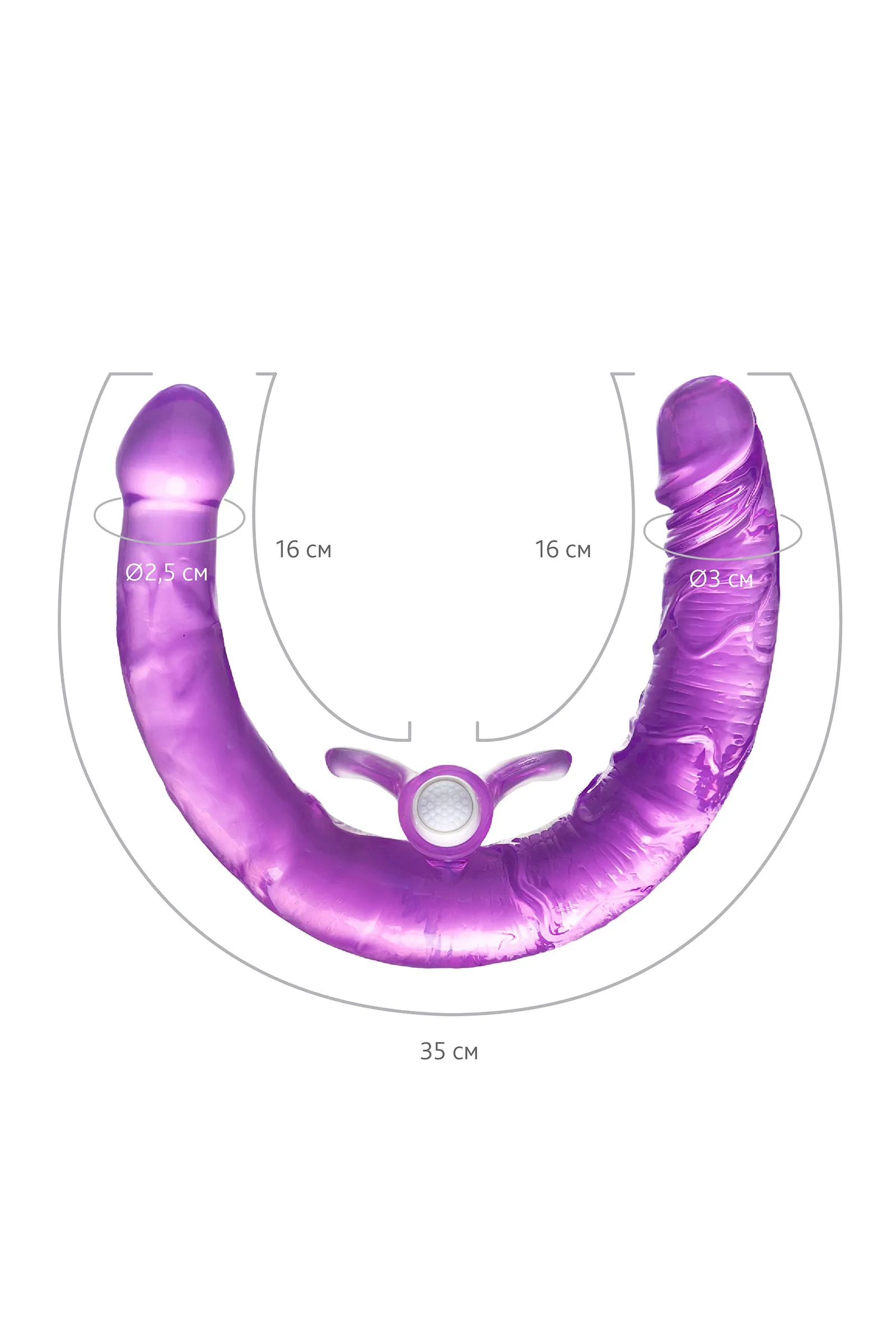 Двусторонний фаллоимитатор загнутой формы длиной 35 см. можно использовать и соло и в паре. Он легко разгибается, а потом возвращается в изначальный вид. Оба конца имеют натуральную форму с головкой для максимально реалистичных ощущений. Остроты впечатлений от использования этого дилдо добавит вибрация от пульки, одинаково передаваемая на обе стороны. После использования фаллоимитатора, вынимайте пулю, чтобы избежать повреждения материала кольца. Пулька работает от 3х батареек типа LR44 (в комплекте)