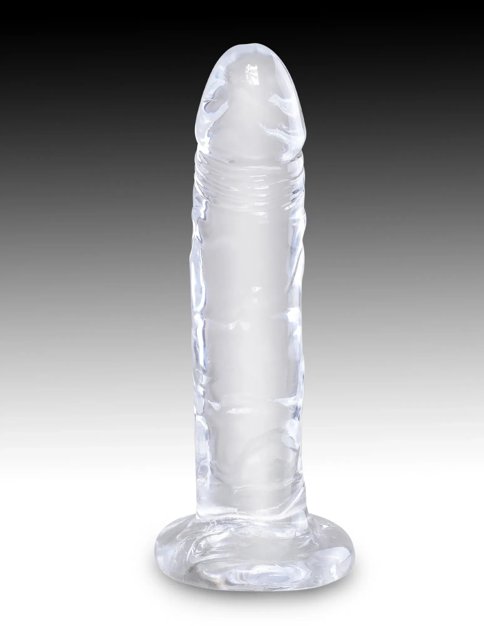 Фаллоимитатор King Cock Clear из прозрачного TPE (длина около 16 см). Гибкий ствол с деталями, присоска совместима с трусами для страпона. Без запаха, вес 0,31 кг. Легко чистить. Диаметр присоски - 7 см