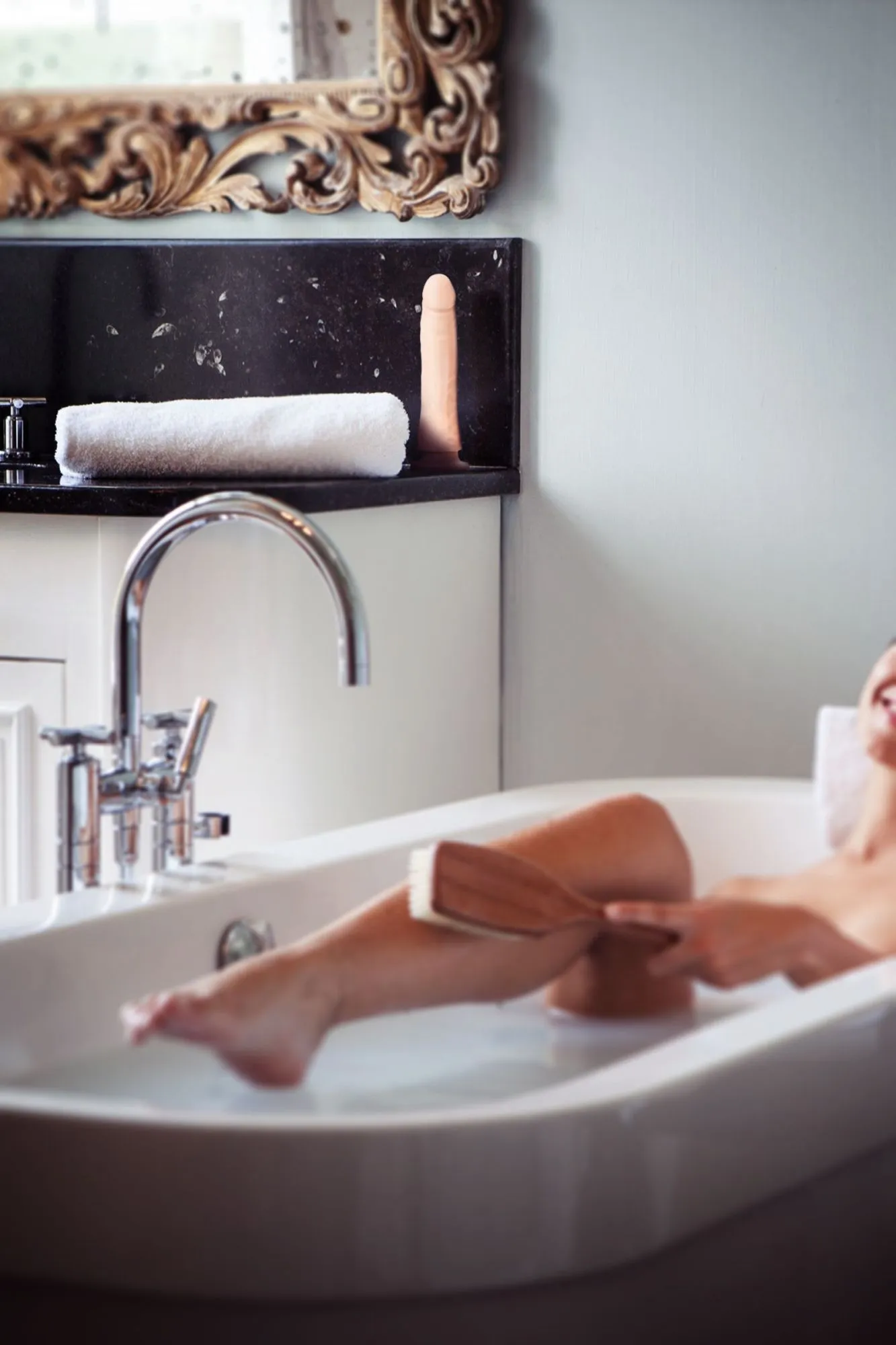 Классический фаллоимитатор Realstick Elite Silicone сочетает в себе уникальность ощущений и невероятную реалистичность. Гибкий ствол и мягкий бархатистый силикон делают проникновение нежным и комфортным. Гладкая нежная головка и рельефные вены обеспечивают дополнительную стимуляцию. В основании мощная присоска, которая позволяет крепить изделие на любой гладкой поверхности. Отлично подходит для использования с трусиками RealStick Strap-On. Дерзкий и стильный фаллоимитатор Realstick Elite Silicone подходит для тех, кто не готов идти на компромиссы и хочет для себя самого лучшего любовника. Общая длина: 21,5 см Рабочая длина: 19 см Диаметр: 3,5-4,5 см