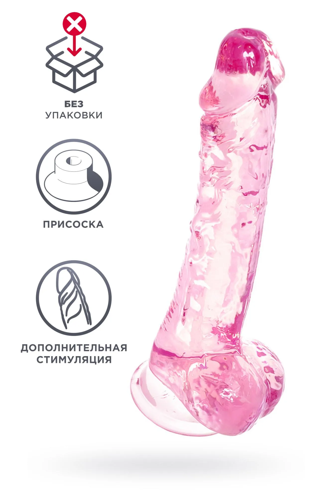 Реалистичный фаллоимитатор сделан из высококачественного материала. Необычный дизайн в виде полупрозрачного пениса нежного розового оттенка создает влажный глянцевый эффект и делает сексуальную игру особенно пикантной. Благодаря наличию мошонки и присоски подходит для вагинального и анального проникновения. Рельефная головка оказывает дополнительную стимуляцию зоны G и эрогенных точек. Размер фаллоимитатора позволяет получать удовольствие и практиковать оральные ласки. Использовать только с лубрикантами на водной основе.