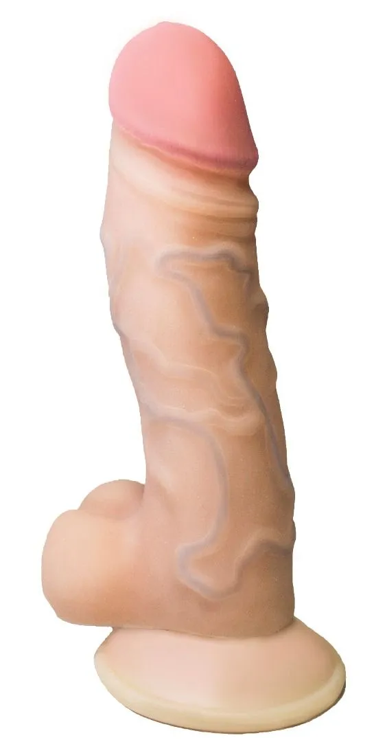 Фаллоимитатор максимально похож на настоящий член. Такое сходство возможно благодаря реалистичному материалу "неоскин", отличающемуся мягкостью и упругостью, а также натуралистичному дизайну. Розовая головка, толстый ствол, увитый венками, и крупная мошонка фаллоса детально проработаны. Его изгиб, эластичность и жесткость максимально соответствуют физиологическим свойствам мужского пениса.