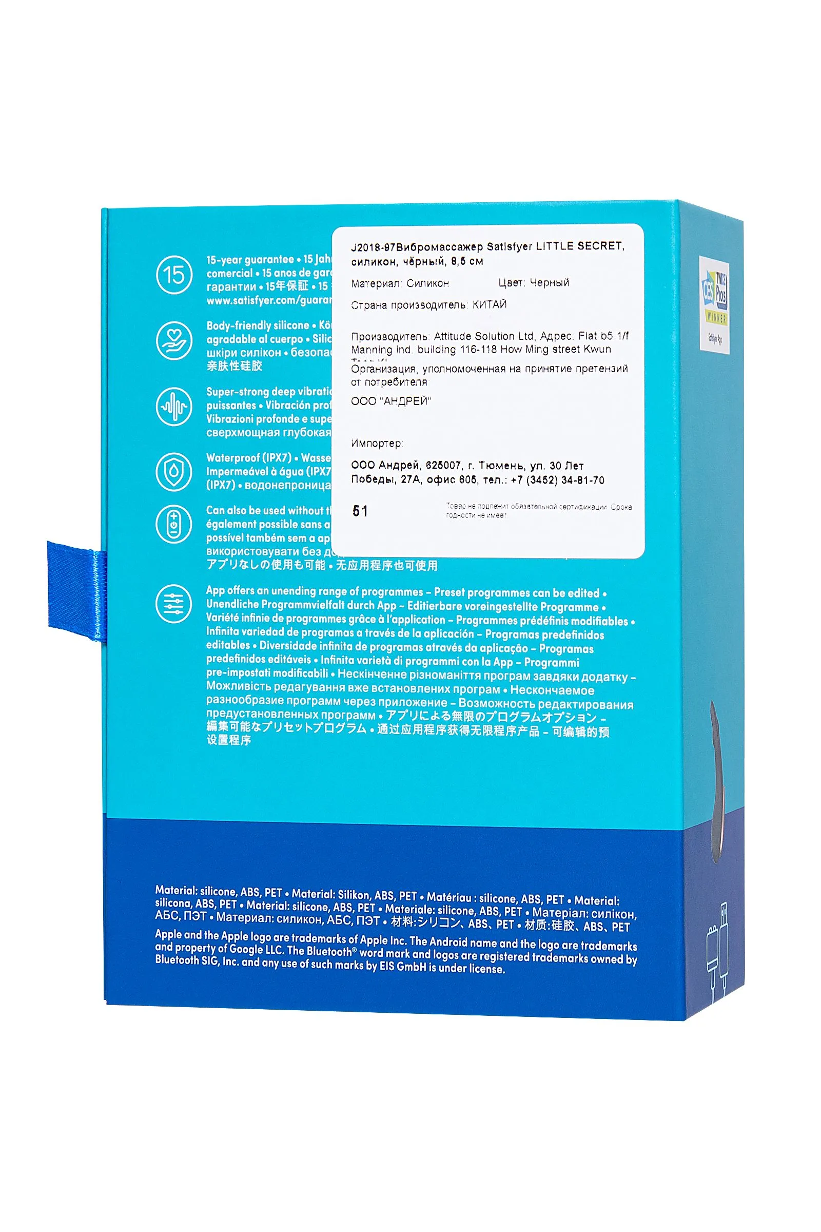 Little Sexy Secret - компактный и удобный вибростимулятор в трусики с дистанционным управлением. Клиторальный стимулятор крепится к трусикам с помощью магнита и надежно удерживается на месте. Каждый изгиб повторяет форму интимной зоны и прицельно стимулирует область клитора и входа во влагалище. Несмотря на миниатюрные размеры, игрушка обладает мощной низкочастотной глубинной вибрацией. Это значит что воздействие на эрогенные зоны может быть, как интенсивным, так и мягким. Преимуществом игрушки также является тихий мотор, что позволяет использовать вибромассажер незаметно от окружающих в любом месте. Дистанционное управление с помощью приложения или пульта расширяет возможности сексуальной игры. Передайте управление партнеру, даже если вы находитесь на разных уголках планеты. Специальное приложение Satisfyer Connect предлагает создать собственные уникальные плейлисты вибрации. Настраивайте их под любимые музыкальные треки. А защищенное соединение Bluetooth обеспечивает повышенную безопасность, предотвращая другие сигналы и гарантируя надежность коннекта. Высококачественный безопасный силикон и безупречный дизайн в оформлении насыщенного черного и золотого цвета вызывает удовольствие от каждого прикосновения. Не забудьте добавить лубрикант на водной основе для еще более комфортного использования. Little Sexy Secret не боится влаги и получать удовольствие с ним можно даже в воде. Очищать игрушку желательно до и после использования. Можно помыть в теплой воде с мылом или воспользоваться специализированным чистящим средством. Перед хранением вибромассажер необходимо хорошо просушить. Желательно хранить отдельно от других силиконовых изделий. 10 режимов интенсивности с возможностью управления с помощью кнопки на вибромассажере, пульта и через бесплатное приложение Satisfyer Connect, доступного для iOS и Android Надежный гарантия 15 лет Инновационные технологии – дистанционное управление с возможностью создания собственных уникальных ритмов. Безопасный и гигиеничный медицинский силикон Бесшумный – о шалостях никто не узнает Красивый и удобный – стильный дизайн и эргономичная форма Водонепроницаемость IPX7 – новые возможности в удовольствии в душе и ванной Магнитная USB-зарядка – время зарядки 90 минут, время работы 180 минут Страна бренда – Германия