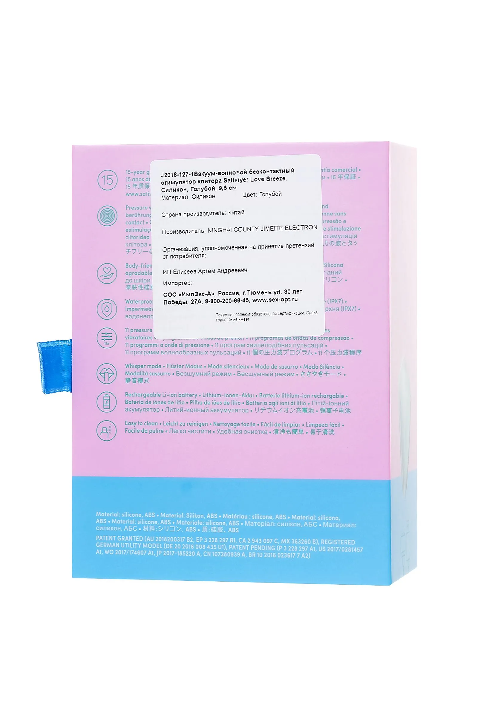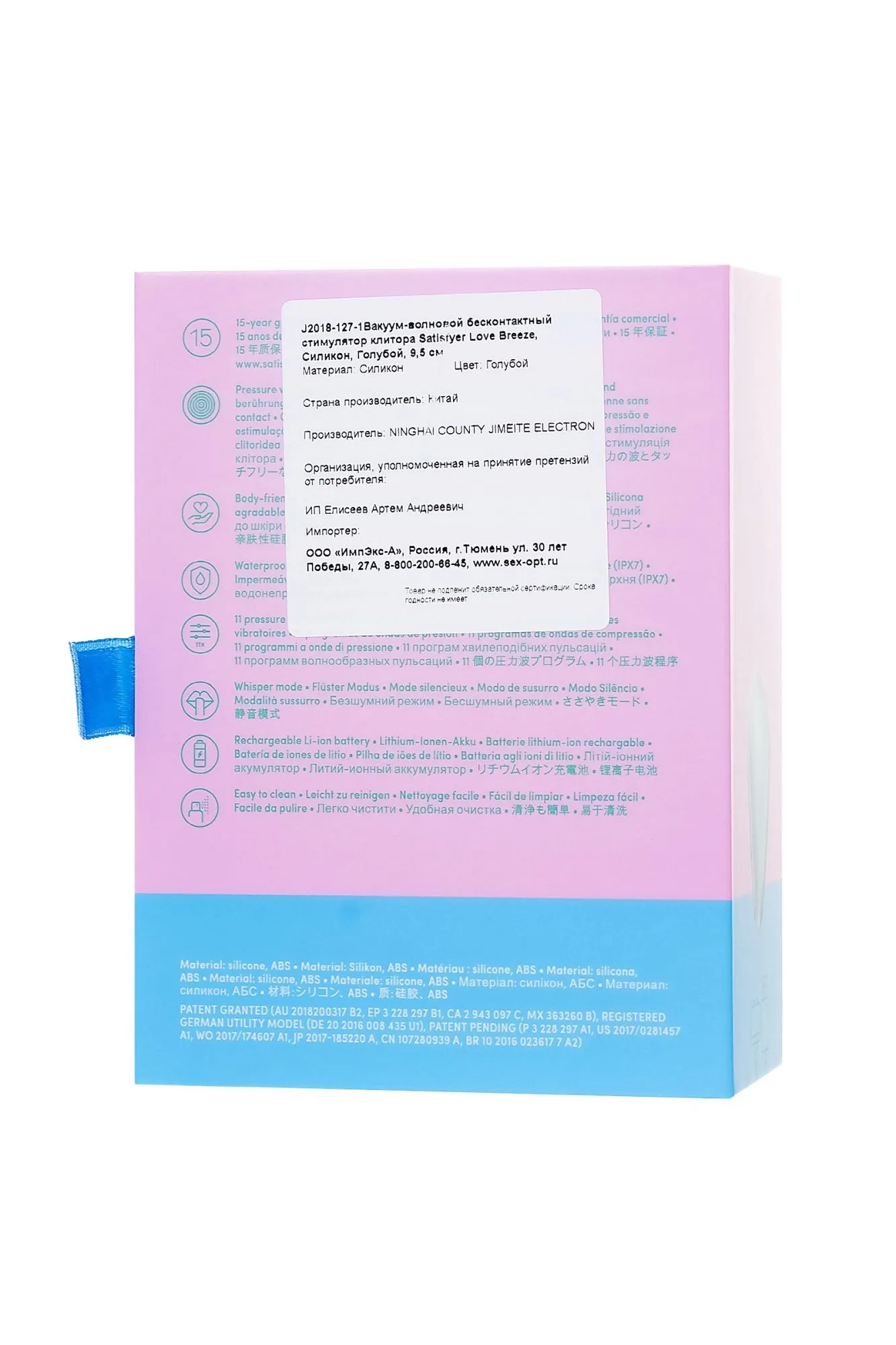 —Вакуум-волновой бесконтактный стимулятор клитора Satisfyer Love Breeze, силикон, голубой, 9,5 см.