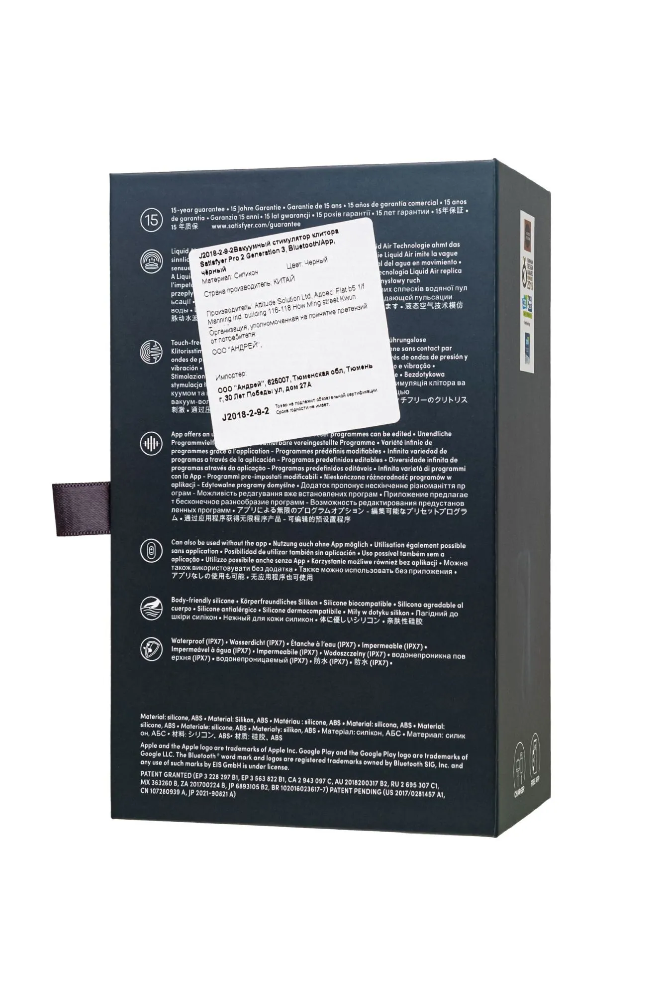 Обновленный флагман женских оргазмов Satisfyer Pro 2 Generation 3 готов удивлять и дарить наслаждение уже сейчас. Еще более умелый любовник, способный имитировать оральные ласки, готов дарить удовольствие столько, сколько потребуется. Благодаря инновационной технологии Liquid Air, новейшее поколение Pro 2 Generation 3 имитирует чувственный прилив пульсирующей и вибрирующей воды. Дополнительная насадка с тонкой и сверх мягкой силиконовой мембраной создает интенсивные волны. Pro 2 Generation 3 наполняет ваше тело этими волнами удовольствия, создавая особенно естественное ощущение и обеспечивая кристально чистые оргазмы, которых вы никогда раньше не испытывали. Стимулируйте и балуйте клитор разнообразием ласк. В комплекте с Pro 2 Generation 3 вы найдете насадку с классической бесконтактной пульсацией по технологии Air Pulse. Меняйте насадки по настроению, дополняя ваше сексуальное путешествие чувственными волнами вибрации. Pro 2 Generation 3 обладает двумя автономными моторами. Комбинируйте воздушную пульсацию и проникающие волны вибрации, чтобы достигать неземного блаженства каждый раз. В вашем распоряжении 11 уровней интенсивности вакуум-волновой стимуляции и 12 программ вибрации – от нежной до интенсивной. Интуитивно понятное управление с помощью трех кнопок на корпусе. Испытайте удовольствие по-настоящему с бесплатной функцией управление при помощи смартфона с поддержкой Bluetooth через приложение Satisfyer Connect, доступное на Android и iOS. Создавайте собственные уникальные режимы вибрации, существенно расширив возможности предустановленных режимов. Девайс способен вибрировать даже в такт музыке. Satisfyer Connect не имеет границ – передавайте управление удовольствием партнеру даже на большом расстоянии. Обновленный Pro 2 Generation 3 полностью покрыт бесшовным приятным для кожи силиконом с технологией Soft Touch Feel. Нежный материал особенно приятно держать в руках. Высококачественный шелковистый на ощупь гипоаллергенный силикон – визитная карточка бренда Satisfyer. Поверхность насадок мягко и деликатно стимулирует клиторальную область, тактильно нежный и приятный на ощупь, силикон быстро адаптируется к температуре вашего тела. Pro 2 Generation 3 не боится воды и с удовольствием доставит вам наслаждение прямо в ванной и душе. Чтобы получить максимум удовольствия и сохранить материал в наилучшем виде, рекомендуется пользоваться качественной смазкой на водной основе. После использования обязательно очищайте игрушку теплой водой со специальными бактерицидными спреями для интимных товаров. Особенности: Инновационная технология Liquid Air, имитирующая прилив пульсирующей и вибрирующей воды. Возможность одновременного воздействия на клитор воздушной пульсацией Air Pulse и вибрацией. Простое управление тремя кнопками на корпусе и неограниченные возможности управления через приложение Satisfyer Connect даже на расстоянии. 12 режимов вибрации и 11 режимов волновой стимуляции. Глубокий черный цвет и шелковистый силикон Soft Touch Feel без запаха, без аллергенов и вредных для здоровья веществ. 100% водонепроницаемый - IPX7. Время работы 60 минут. Перезаряжаемый, магнитный USB-кабель, время зарядки 2 часа.