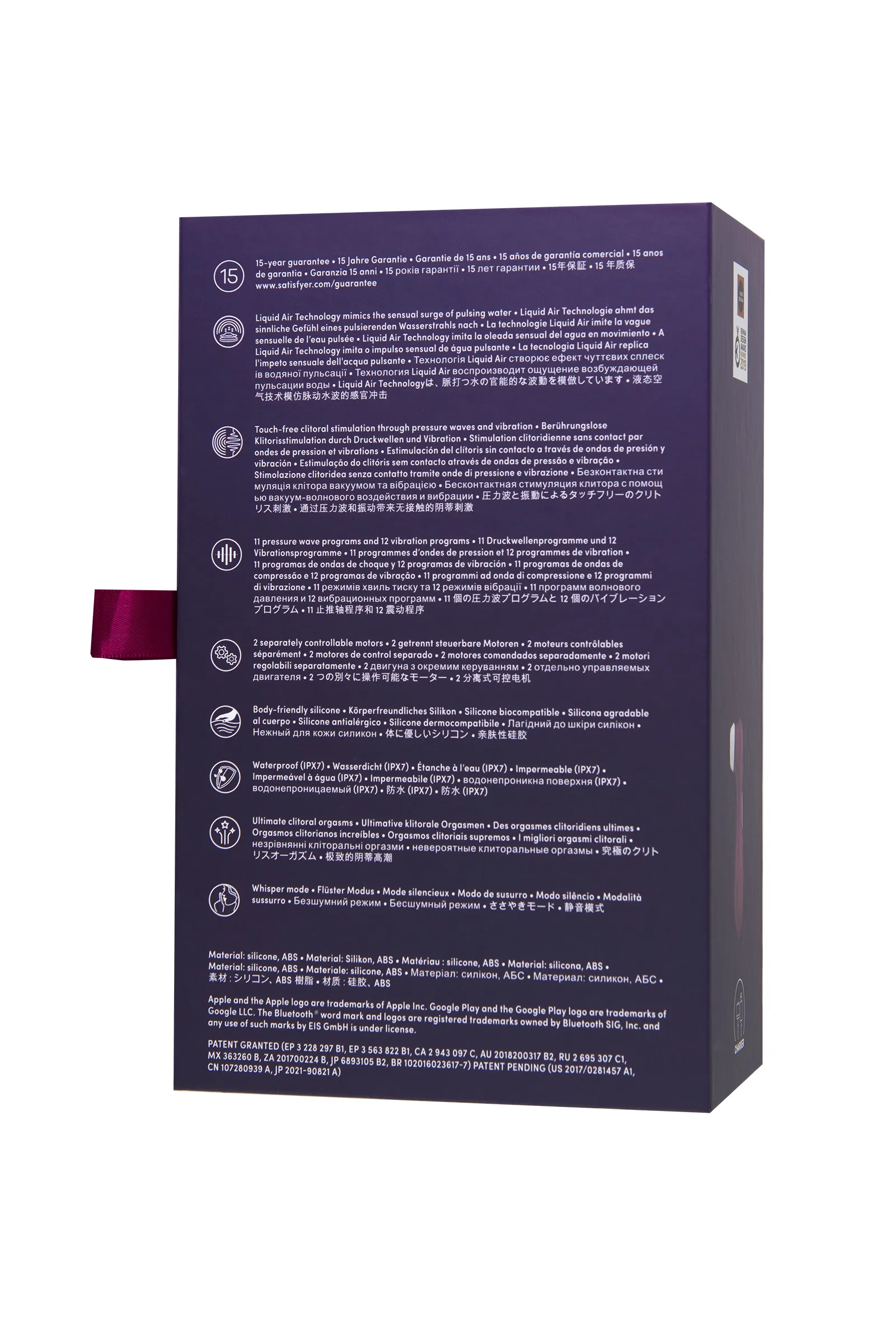 • технология Liquid Air — прилив пульсирующей и вибрирующей волны, который воссоздает эффект оральных ласк с поразительной точностью;