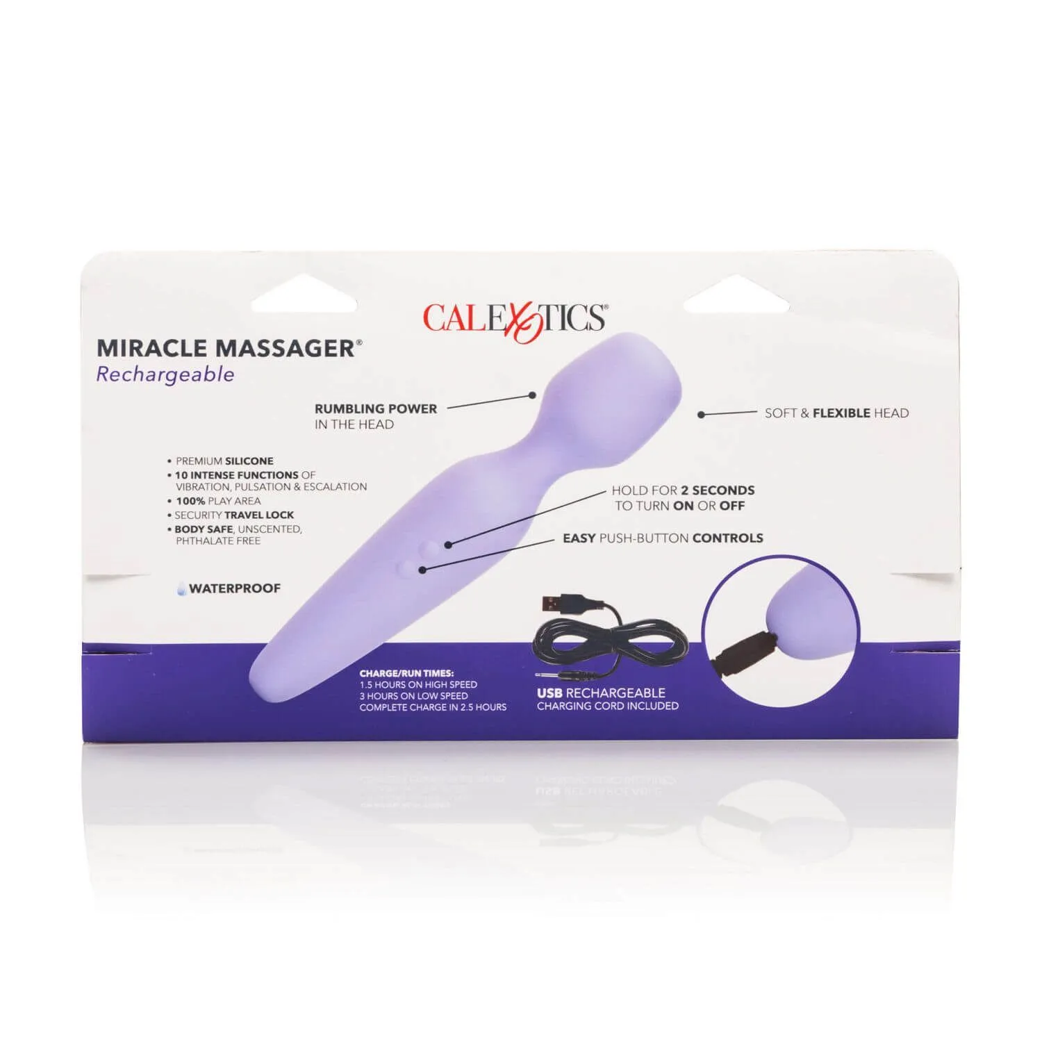 Miracle Massager выполнен из качественного медицинского силикона, этот материал не обладает запахом и не содержит фталатов. Массажер оснащен перезаряжаемым аккумулятором и может работать до 3 часов. А функция запоминания последнего использованного режима напомнит Вам, на чем Вы остановились в прошлый раз.