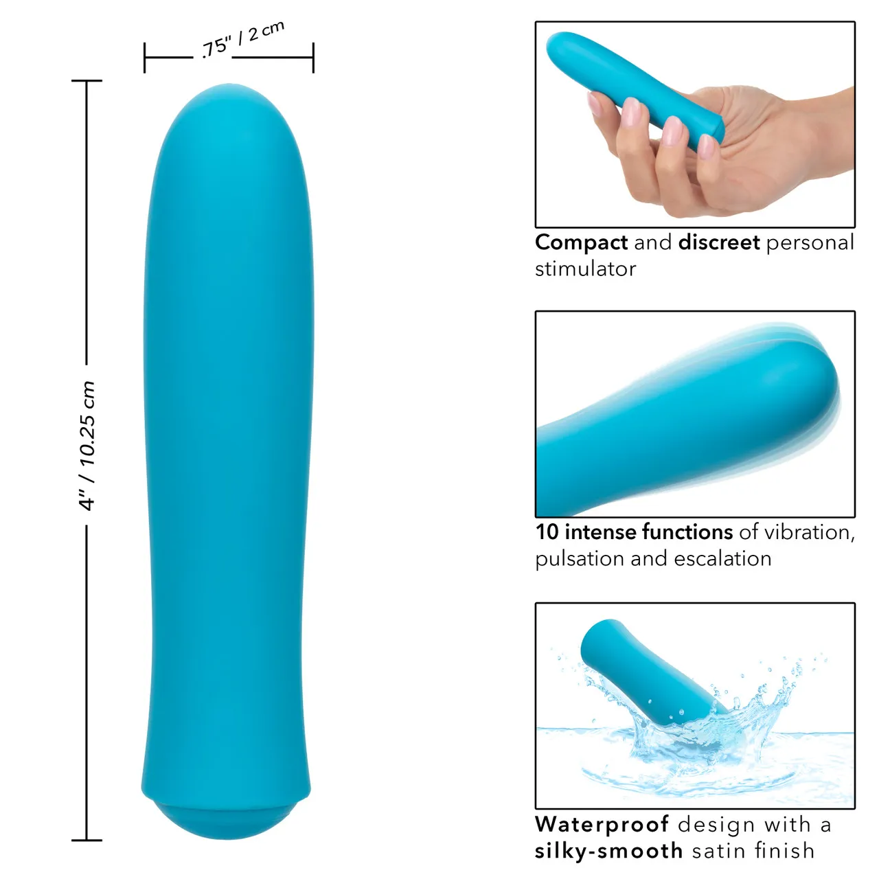 Размер вибромассажера: 10,5 см x 2 см