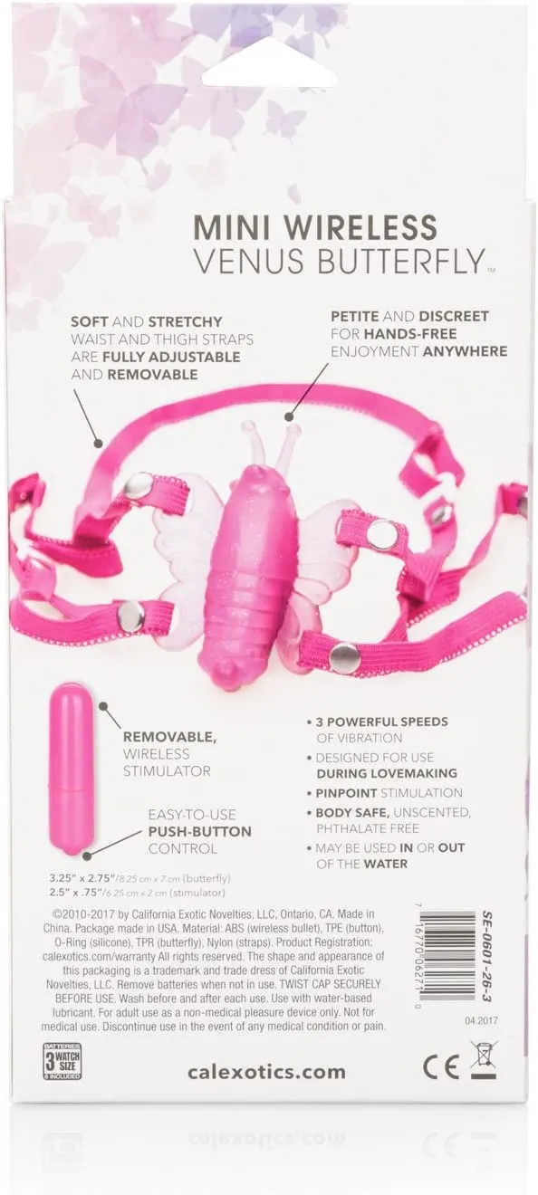 Micro-Wireless Venus Butterfly - компактный бемпроводной вибратор в виде бабочки, который надежно удерживается на месте с помощью удобных регулируемых ремней. Он изготовлен из мягкой, достаточно гибкой приятной на ощупь, гигиенически превосходной термопластичной резины, а вибропуля из прочного, хорошо проводящего вибрацию АБС-пластика. Съемная вибропуля обеспечивает 3 скорости вибрации.