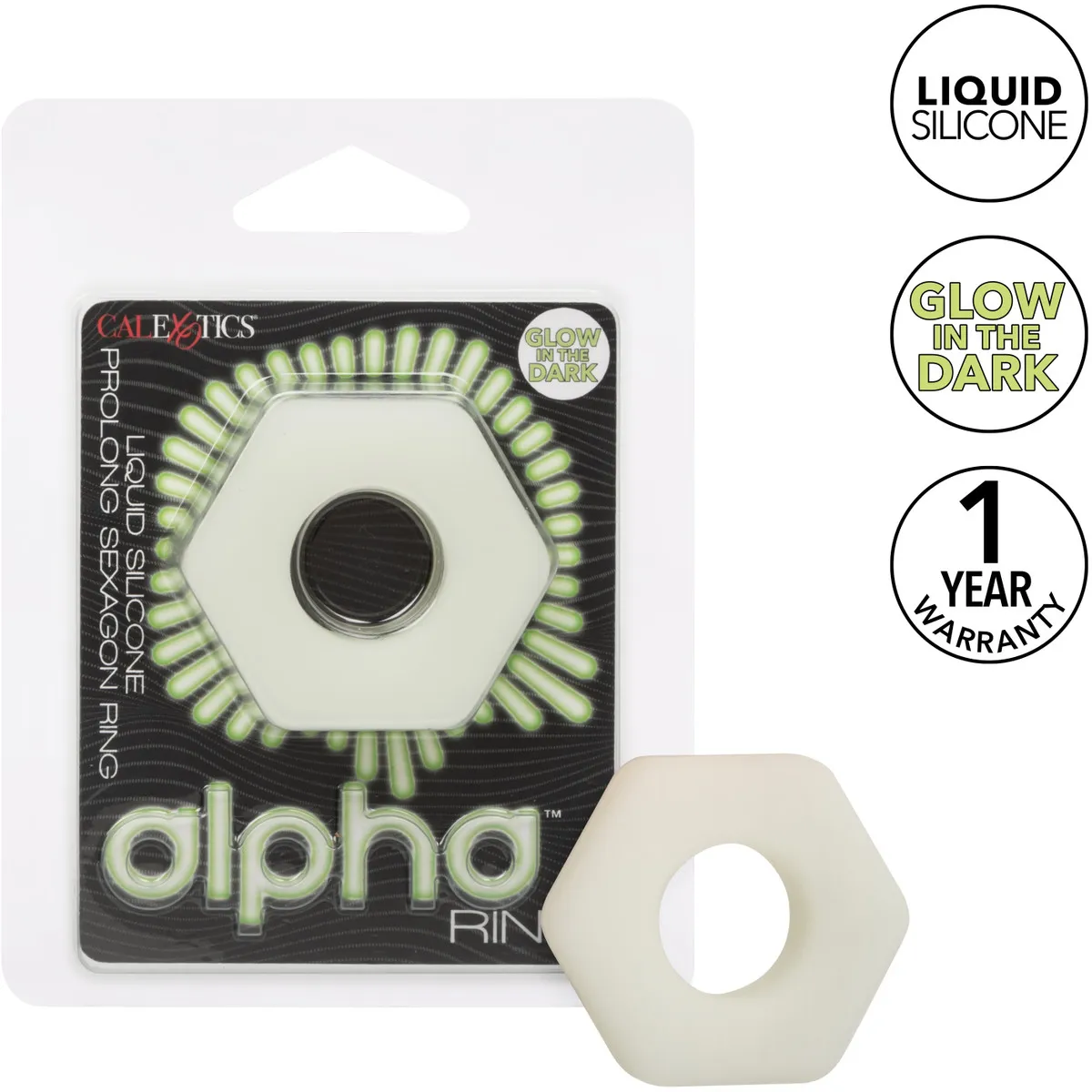 Alpha Sexagon Liquid Silicone Glow-In-The-Dark - стимулирующее эрекционное кольцо для пениса, изготовленное из премиального «жидкого» силикона.