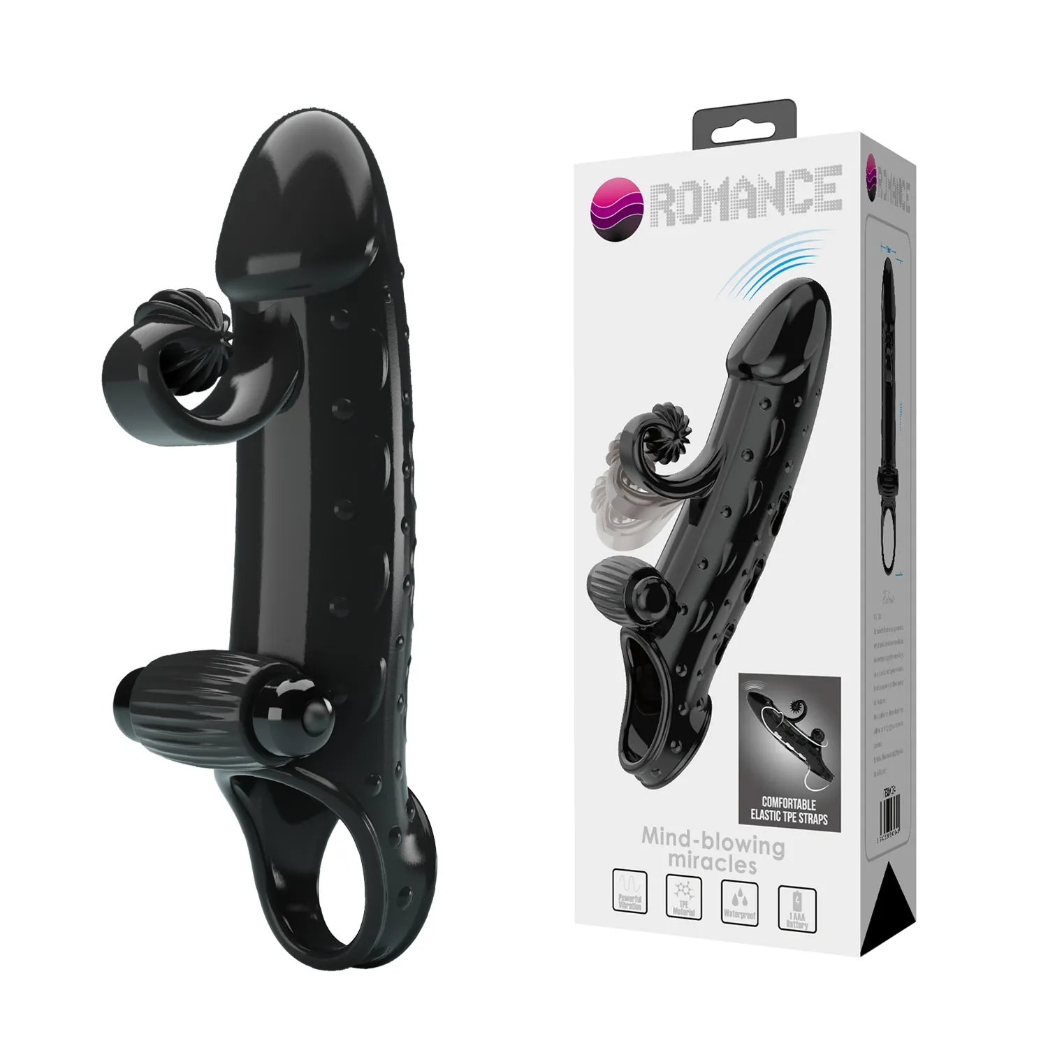Насадка на пенис с вибрацией из ТПР плотно обхватывает пенис, увеличивая его длину и толщину, обеспечивая более яркие ощущения при проникновении. Вибрация усиливает стимуляцию, а гибкий клиторальный отросток с рельефной текстурой обеспечивает дополнительное удовольствие партнёрше при каждом движении.  Вибрация питается от одной батарейки типа AAA (в комплект не входит).