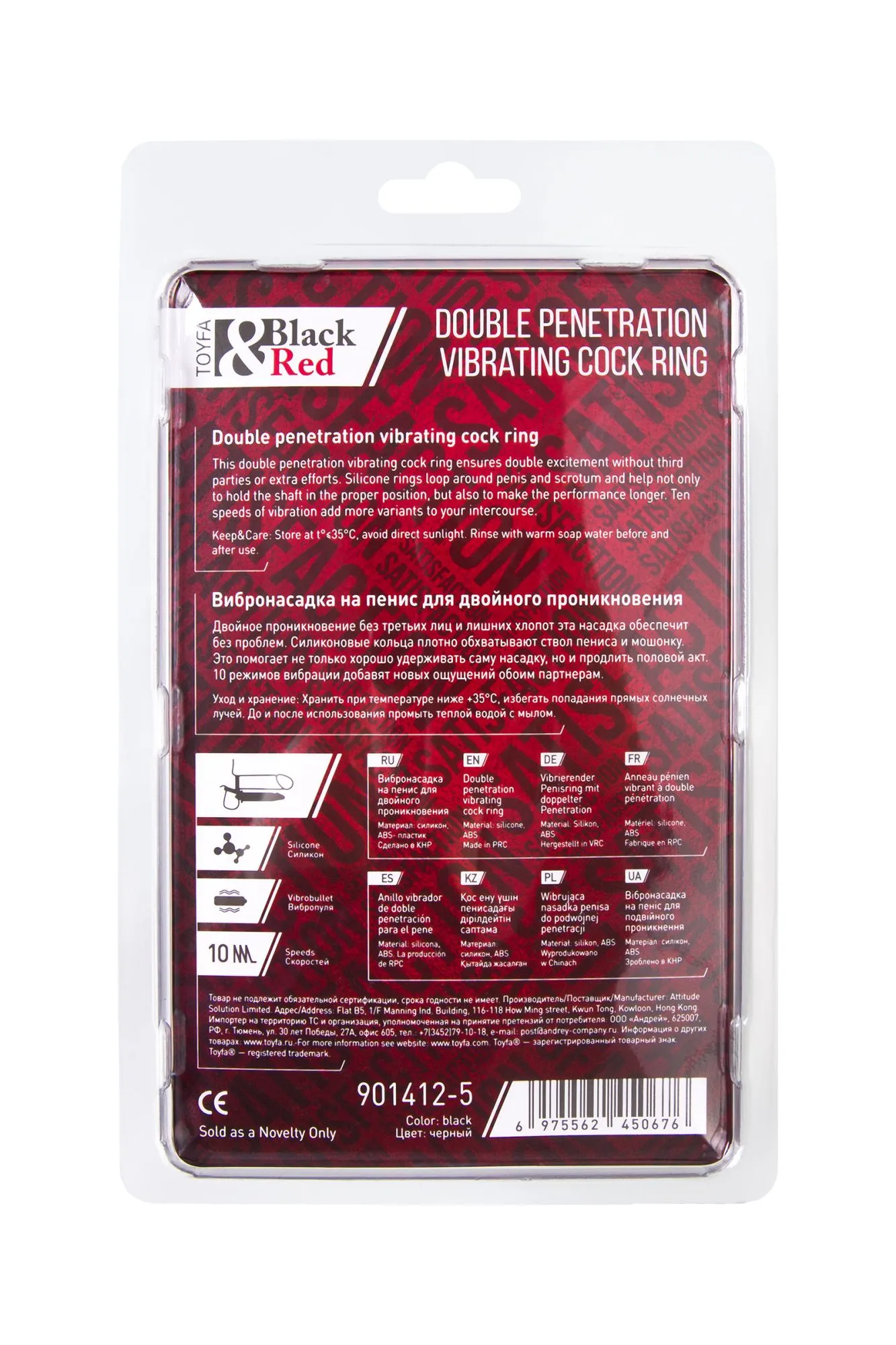 Насадка на пенис для двойного проникновения Black&Red by TOYFA, силикон, чёрная, 19 см