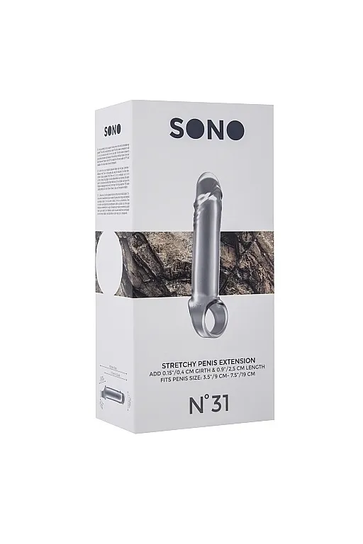 No.31 - Stretchy Penis Extension – насадка закрытого типа для небольшого увеличения длины и обхвата полового члена с кольцом для фиксации на мошонке. Она имеет реалистичную головку для оптимальной стимуляции. Насадка произведена из высококачественного мягкого материала.