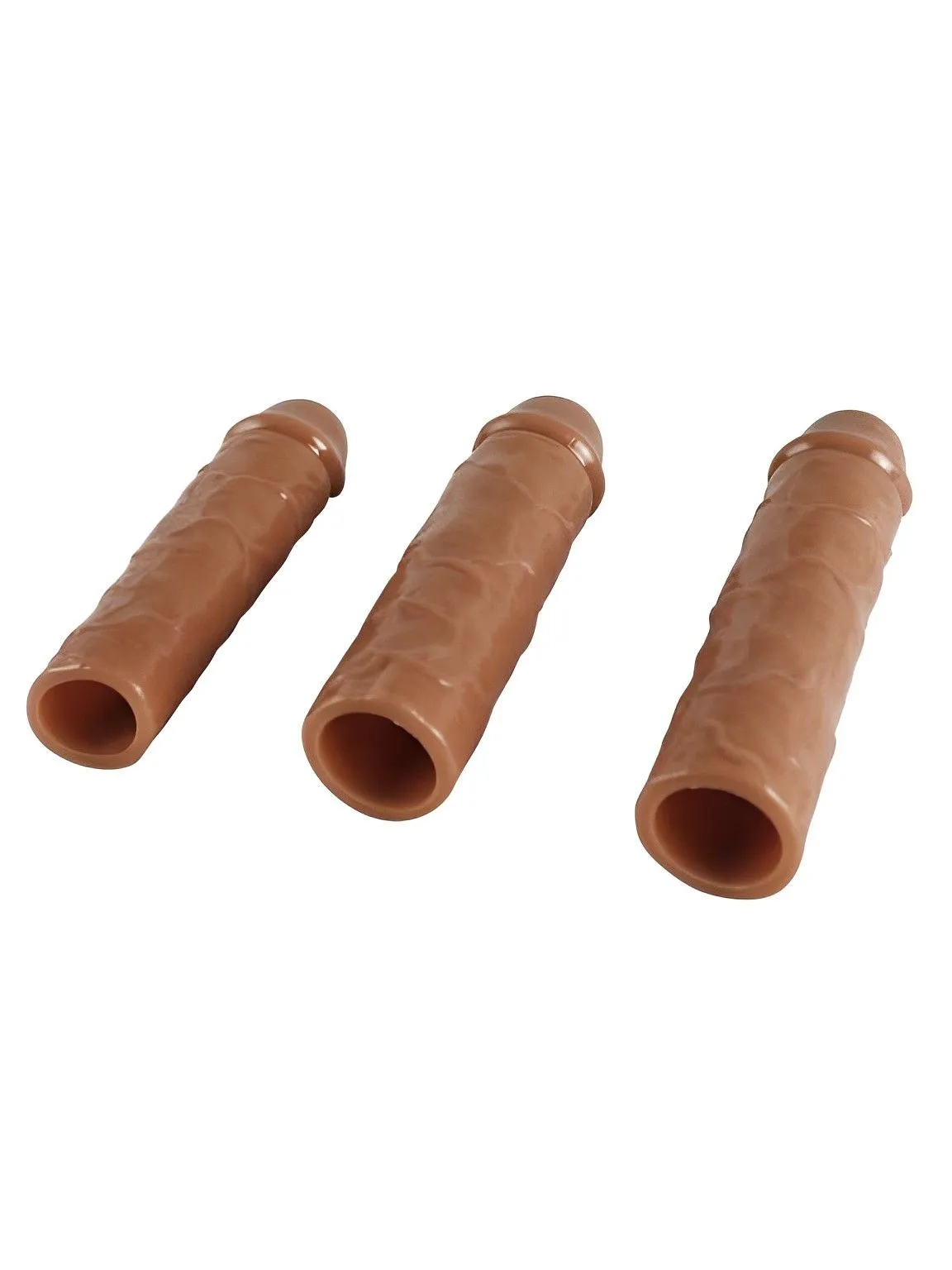 Набор насадок закрытого типа для увеличения длины и обхвата полового члена, а так же осуществления дополнительного воздействия. Насадки обладают сглаженной рельефной текстурой с ярко выраженной головкой для дополнительной более мягкой стимуляции. Они очень эластичные и хорошо растягиваются. Насадки надевается на всю длину полового члена. Для идеальной посадки лишний материал можно отрезать.