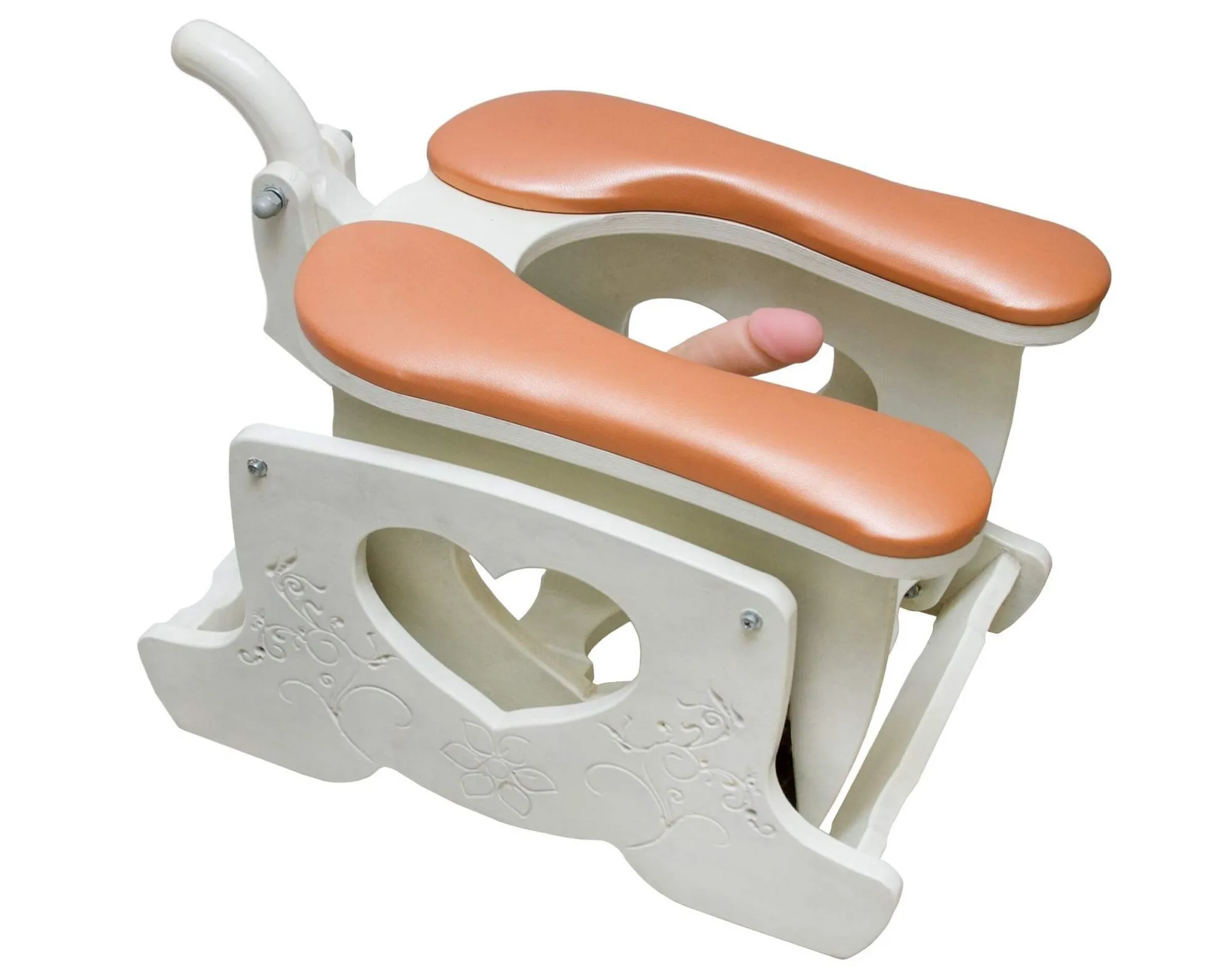 Секс-машина Пегас поможет Вам получить желаемое удовольствие, контролировать которое сможете Вы сами! Машина представляет из себя деревянный каркас с мягким сидением, обитым кожей персикового цвета. В середине расположено крепление для насадок, выполненное из пластика в виде елочки. К нему подойдут все насадки такого же типа. Деревянная рукоять поможет Вам удержаться в самые страстные моменты, к тому же с помощью нее удобно контролировать глубину проникновения фаллоса. Машина практически бесшумна, так что Вы можете смело седлать ее, не боять потревожить домочадцев. Также она достаточно легкая, Вам не потребуется прикладывать много усилий, чтобы передвигать ее по дому.