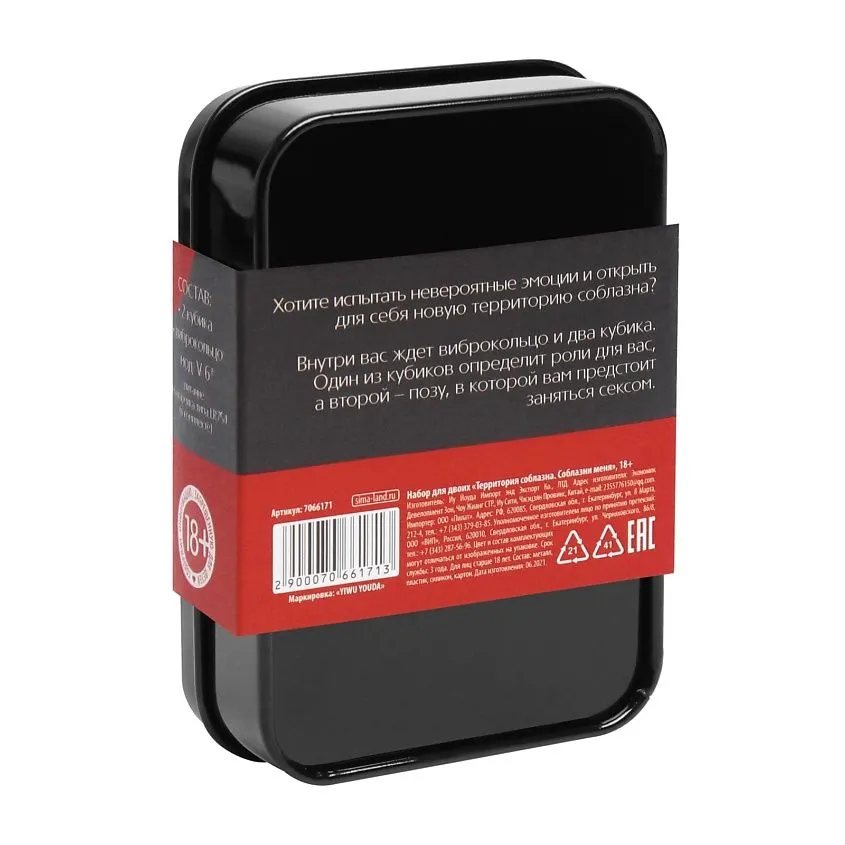 Представляем вам серию премиальных эротических игр в жестяных коробочках. Хотите окунуться в буйство страсти и доставить друг другу незабываемое удовольствие? Тогда этот набор — то, что вам нужно. Внутри вас ждут пикантные атрибуты для секс-игр: виброкольцо и неоновые кубики.