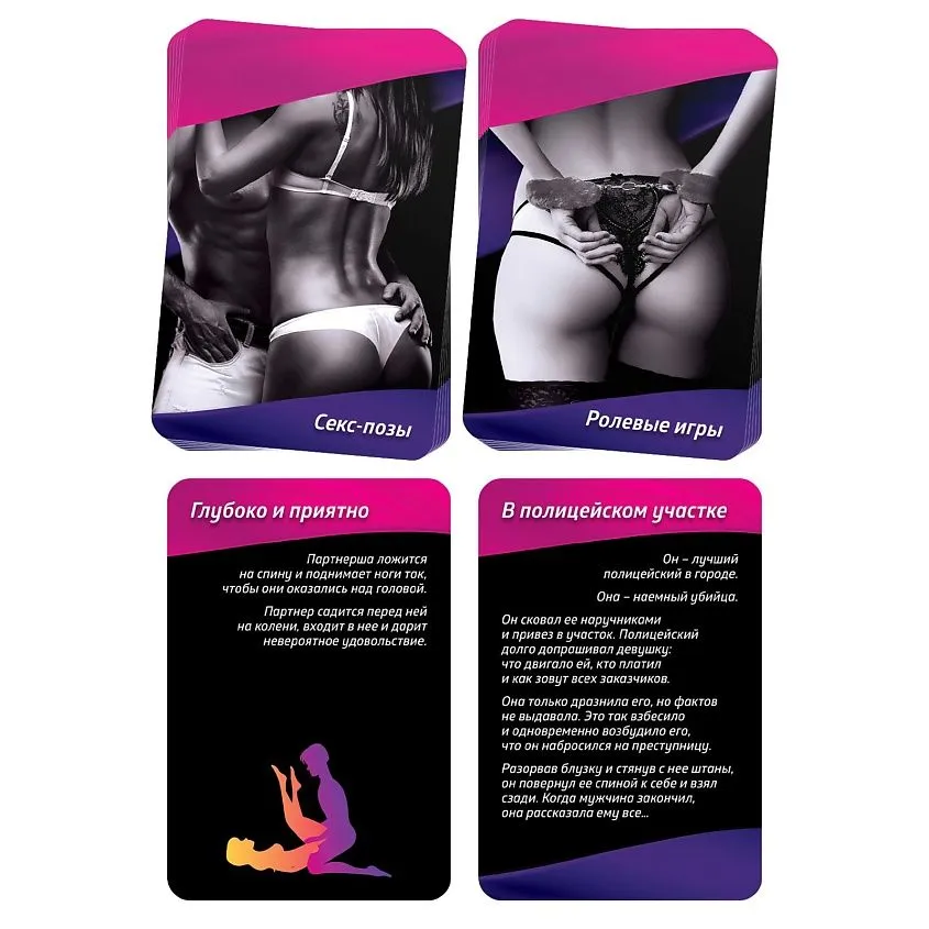 Этот набор позволит вам разнообразить сексуальную жизнь и добавить в неё немного перчинки. Вас ждут 20 карт с ролевыми играми и позами для секса из серии «Ахи-вздохи», анальная втулка, а также вибратор-зайчик для получения новых ощущений. Выбирайте ролевую игру, которую хотите попробовать сегодня, и воплощайте её в жизнь!