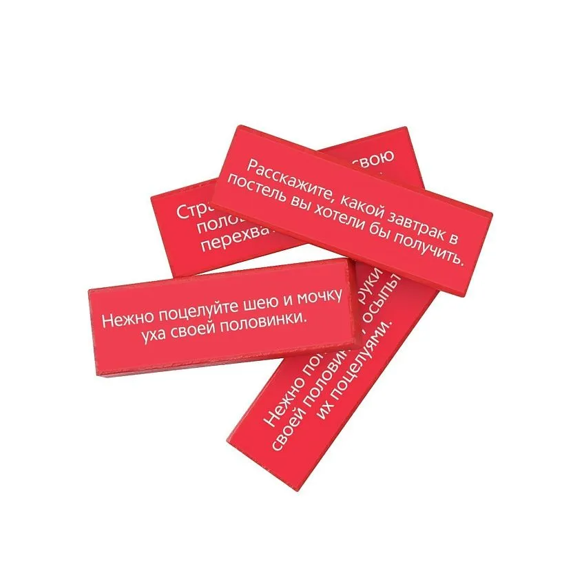 Постройте башню из брусков. Вытягивайте бруски из разных частей башни и выполняйте задания, написанные на брусках. Тот, кто обрушил башню, проиграл!