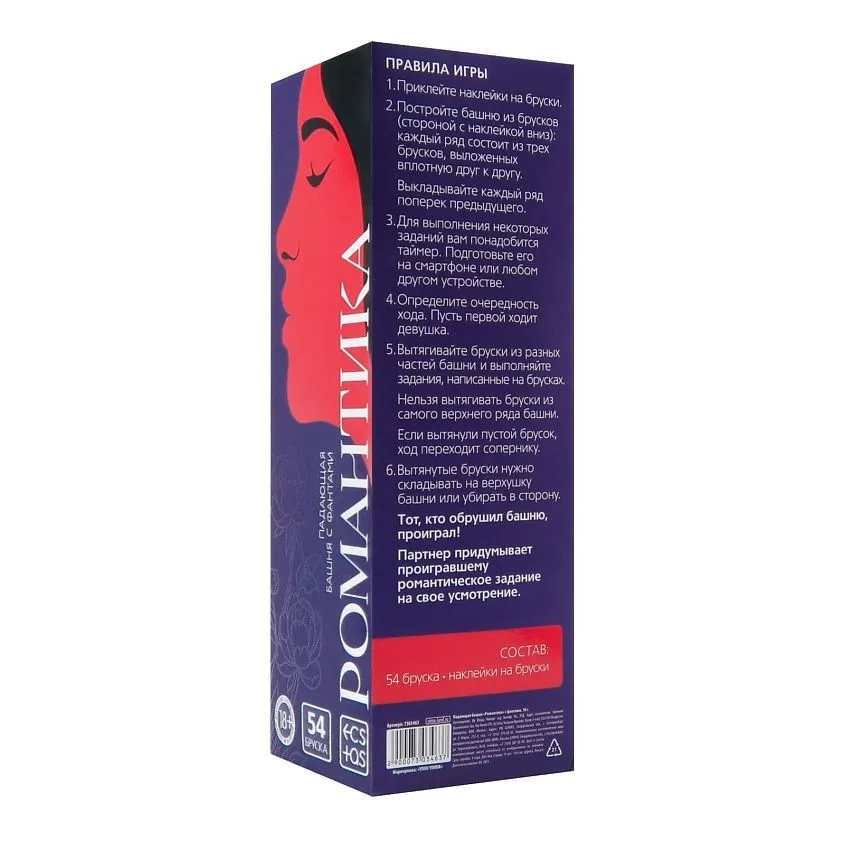 Падающая башня «Романтика» с фантами, 54 бруска