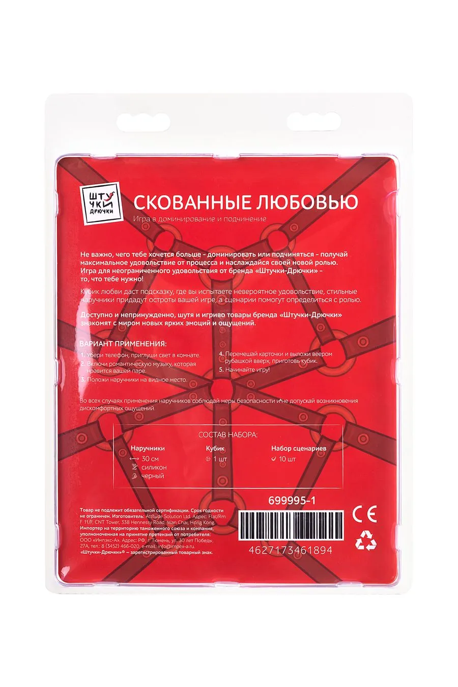 Не важно, чего тебе хочется больше - доминировать или подчиняться - получай максимальное удовольствие от процесса и наслаждайся своей новой ролью. Игра для неограниченного удовольствия от бренда «Штучки-Дрючки» - то, что тебе нужно! Кубик любви даст подсказку, где вы испытаете невероятное удовольствие, стильные наручники придадут остроты вашей игре, а сценарии помогут определиться с ролью.