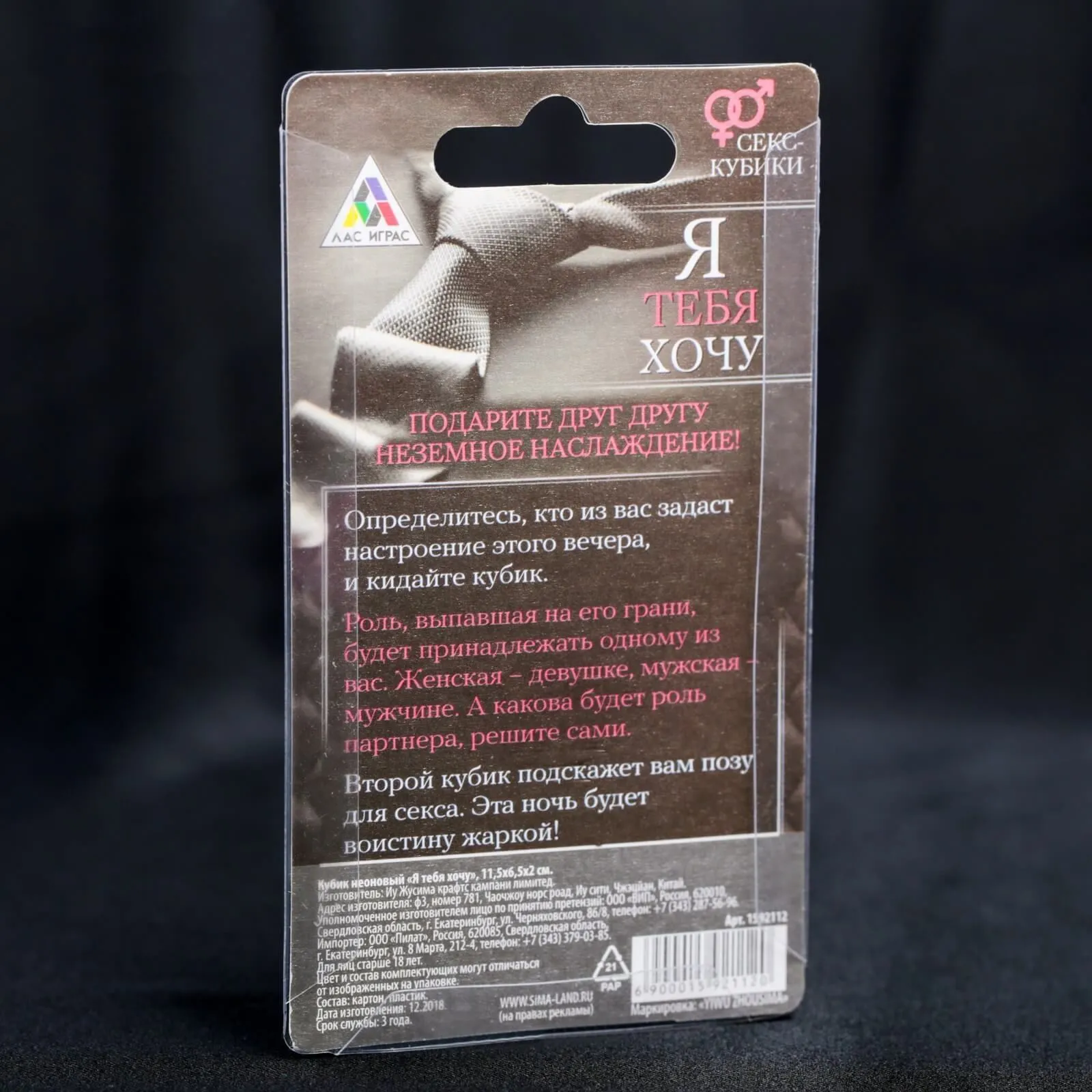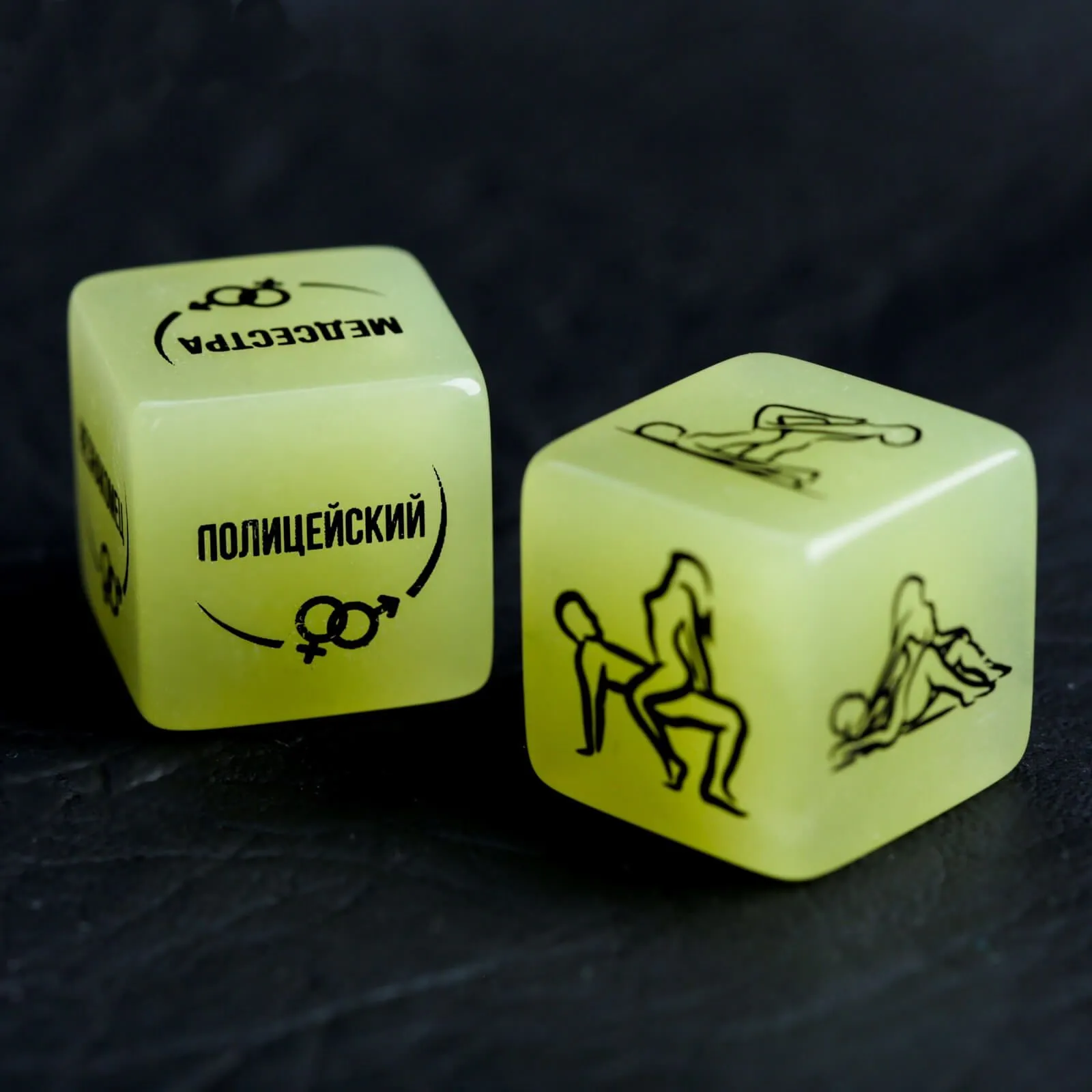 Неоновые кубики для эротических игр "Я тебя хочу" помогут паре доставить друг другу незабываемое удовольствие и примерить на себя различные роли. Бросайте кубики, чтобы узнать, какую позу Вам предстоит исполнить и какая роль предстоит одному из партнеров. Вас ждут незабываемые любовные ласки, полные сюрпризов и приятных неожиданностей! Кубики светятся в темноте, поэтому их будет очень удобно использовать ночью - в самое подходящее время для исполнения смелых желаний.