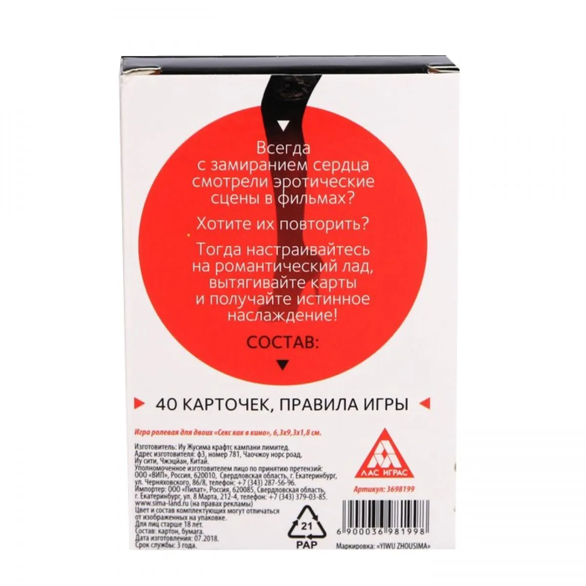 Игра строго 18+! Вы можете вытянуть случайную карту или вытаскивать по очереди, по порядку. Играйте, узнавайте своего партнёра, наслаждайтесь друг другом. Пусть у вас будет секс «как в том кино»!