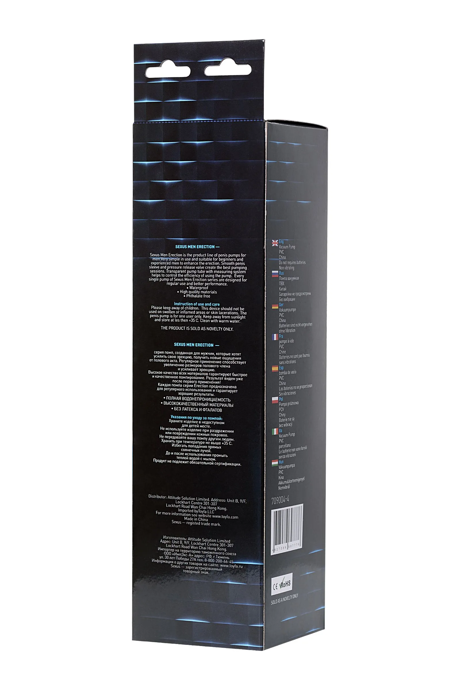 —Помпа для пениса Sexus Men Erection, вакуумная, механическая, ABS пластик, прозрачная, 23 см