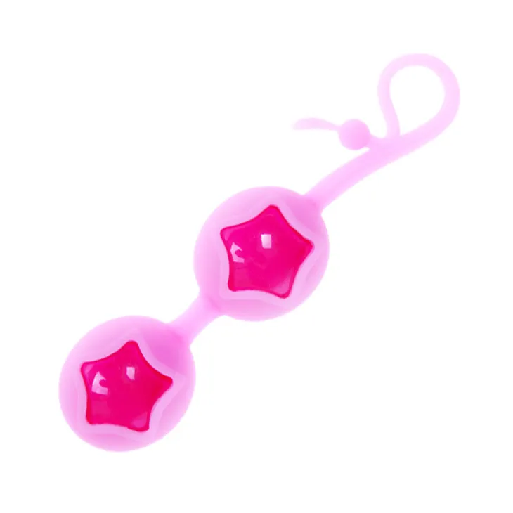 Вагинальные шарики со смещенным центром тяжести. С выпуклым рисунком звёзд. Диаметр – 3,5 см. Длина шарика – 4 см. Два шарика соединены короткой силиконовой перемычкой. Общая длина: 15 см. Рабочая длина: 9,5. Материал – силикон. На ощупь – бархатистый. Упаковка- картонная коробка с принтом. Цвет – розовый. Вес игрушки: 87 гр.