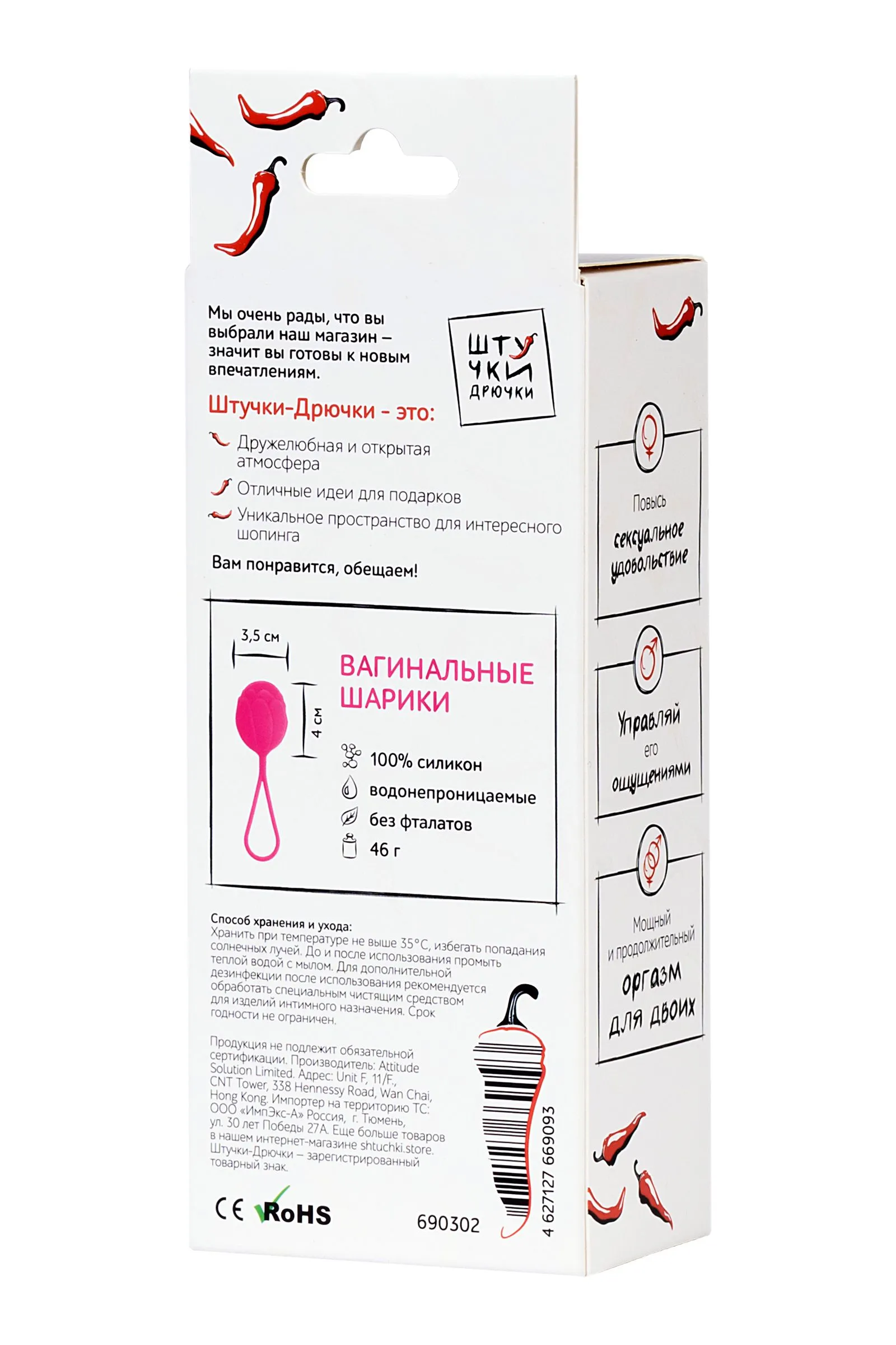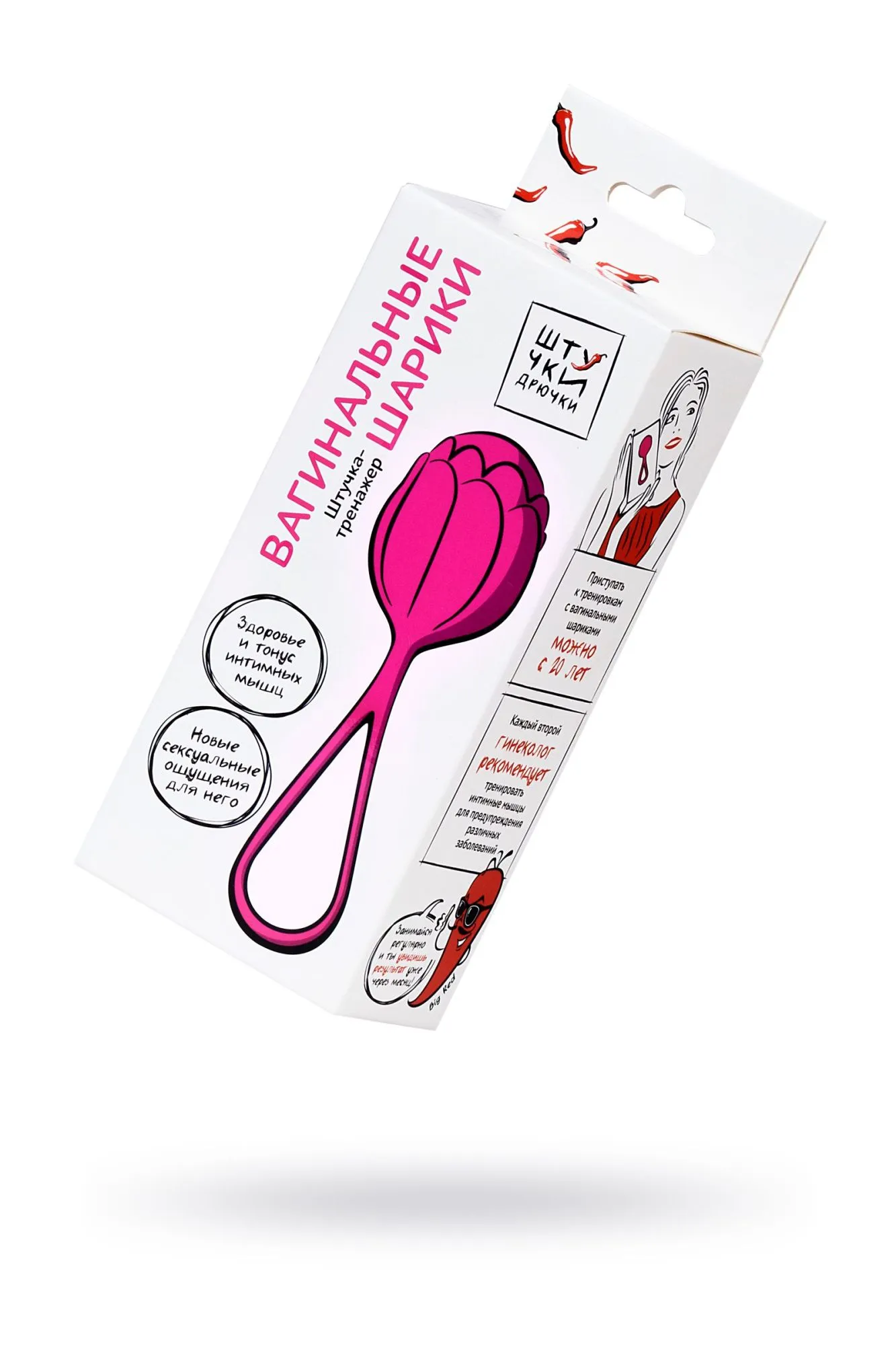 Я — вагинальный шарик «Штучки-Дрючки», лучший тренажер для интимных мышц. Я полностью состою из медицинского силикона, поэтому тренироваться со мной не только удобно, но и безопасно. У меня смещен центр тяжести, что позволяет проводить тренировки с большей эффективностью. Я легко составлю тебе компанию дома во время уборки и даже в офисе во время скучного совещания. Всего за пару месяцев ты укрепишь интимные мышцы и сделаешь их более упругими, а в качестве бонуса получишь умопомрачительный секс и огромное количество оргазмов.
