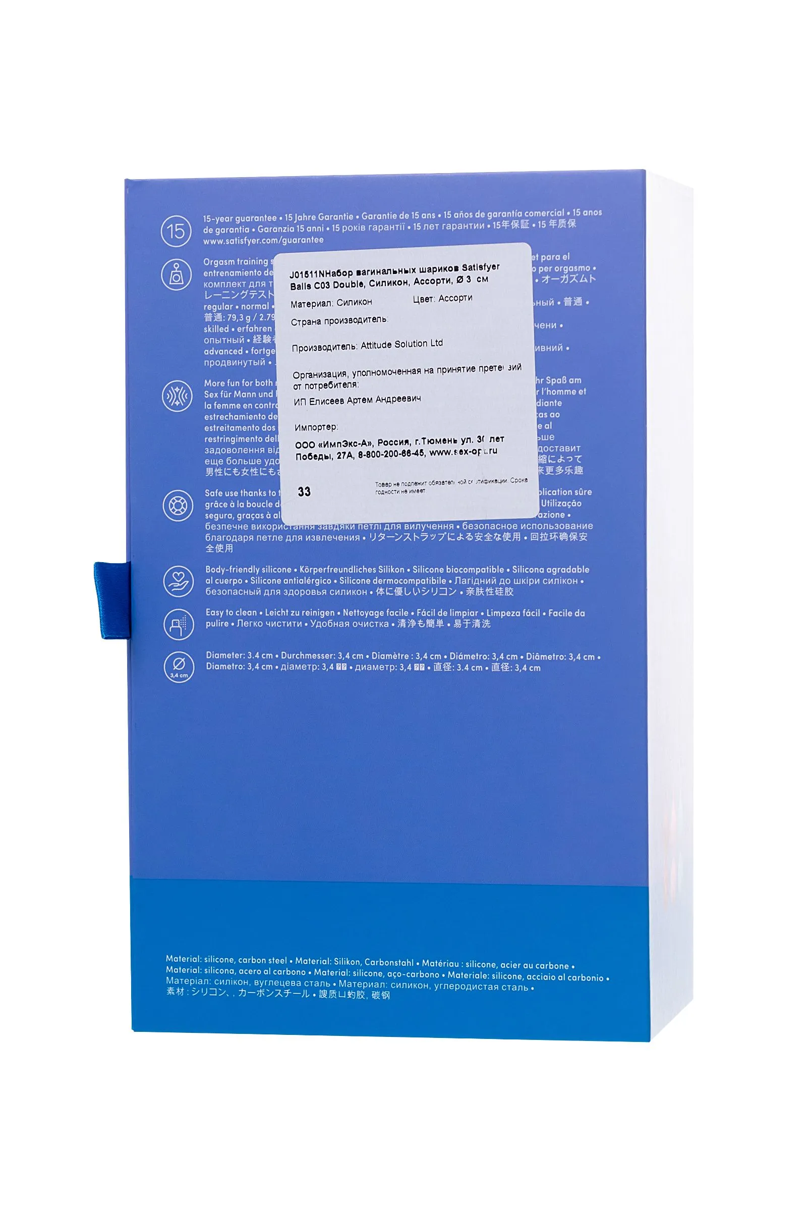 —Набор вагинальных шариков Satisfyer Balls C03 Double, силикон, ассорти, Ø 3 см.
