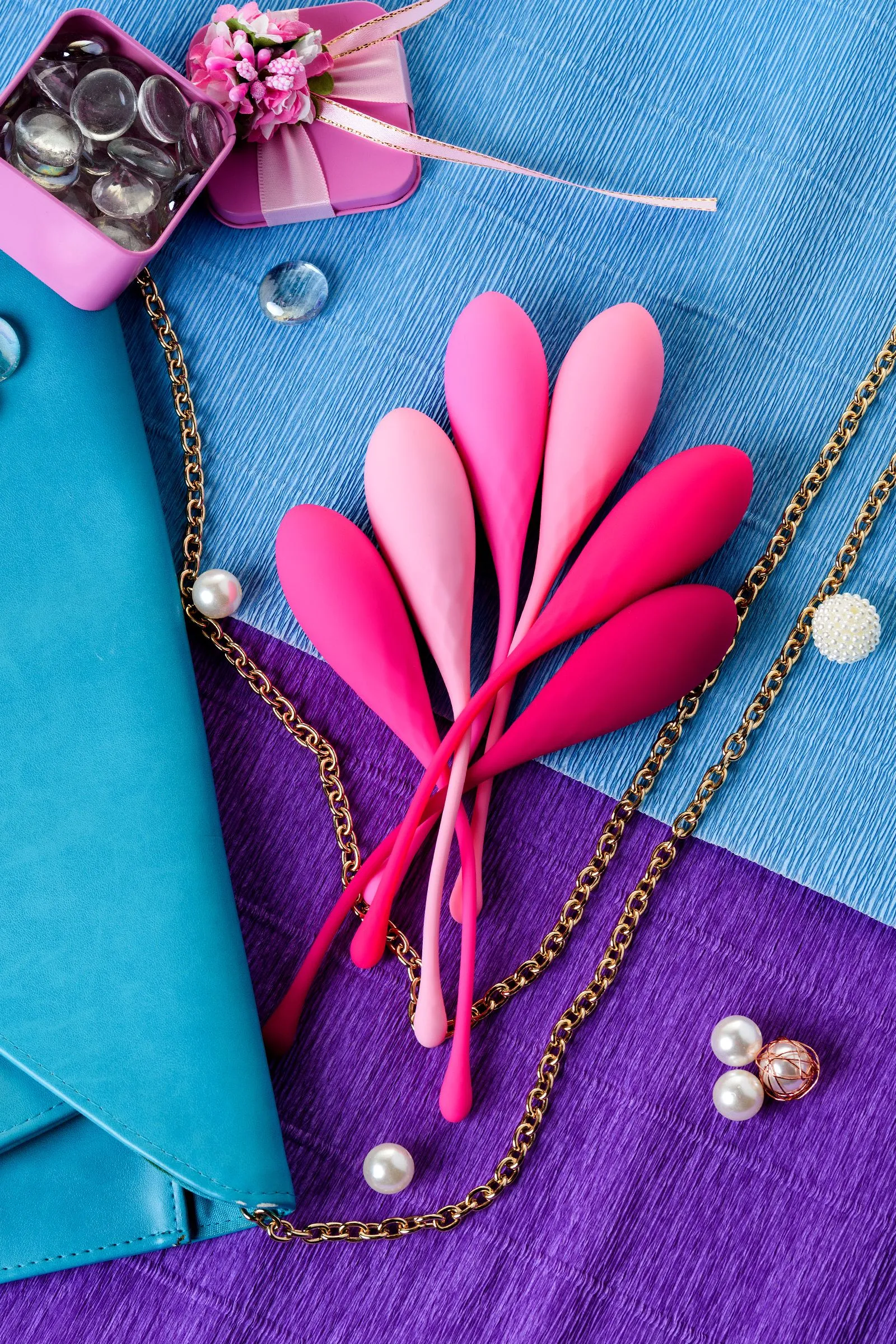 Набор K-Rose превратит гимнастику вагинальных мышц в красивую и эффективную ежедневную заботу о Твоём женском здоровье. Мы уделили тщательное внимание дизайну коробки, чтобы набор было удобно хранить или приятно подарить, поэтому его упаковка отличается особой элегантностью. Мы позаботились о том, чтобы 6 шариков закрыли все Твои потребности в упражнениях с различным весом и Тебе не пришлось докупать новые тренажёры для постепенного увеличения нагрузки в течение года. Выверенный каплевидный дизайн позволит комфортно размещать шарики в теле, а мягкий «хвостик» нежно извлекать по окончании тренировки. Стильная градиентная розовая палитра разрешит Тебе безошибочно определять и использовать необходимый по весу шарик. Занятия интимной гимнастикой с K-Rose помогут укрепить мышцы, избавиться от негативных ощущений во время близости и реальных проблем с женским здоровьем, а также будут поддерживать цветущую сексуальность в любом возрастном периоде. Ты научишься контролировать интимные мышцы и расширишь спектр Твоих чувственных ощущений! В наборе 6 вариантов веса для увеличения нагрузки: 50 г, 65 г, 80 г, 95 г, 110 г, 130 г