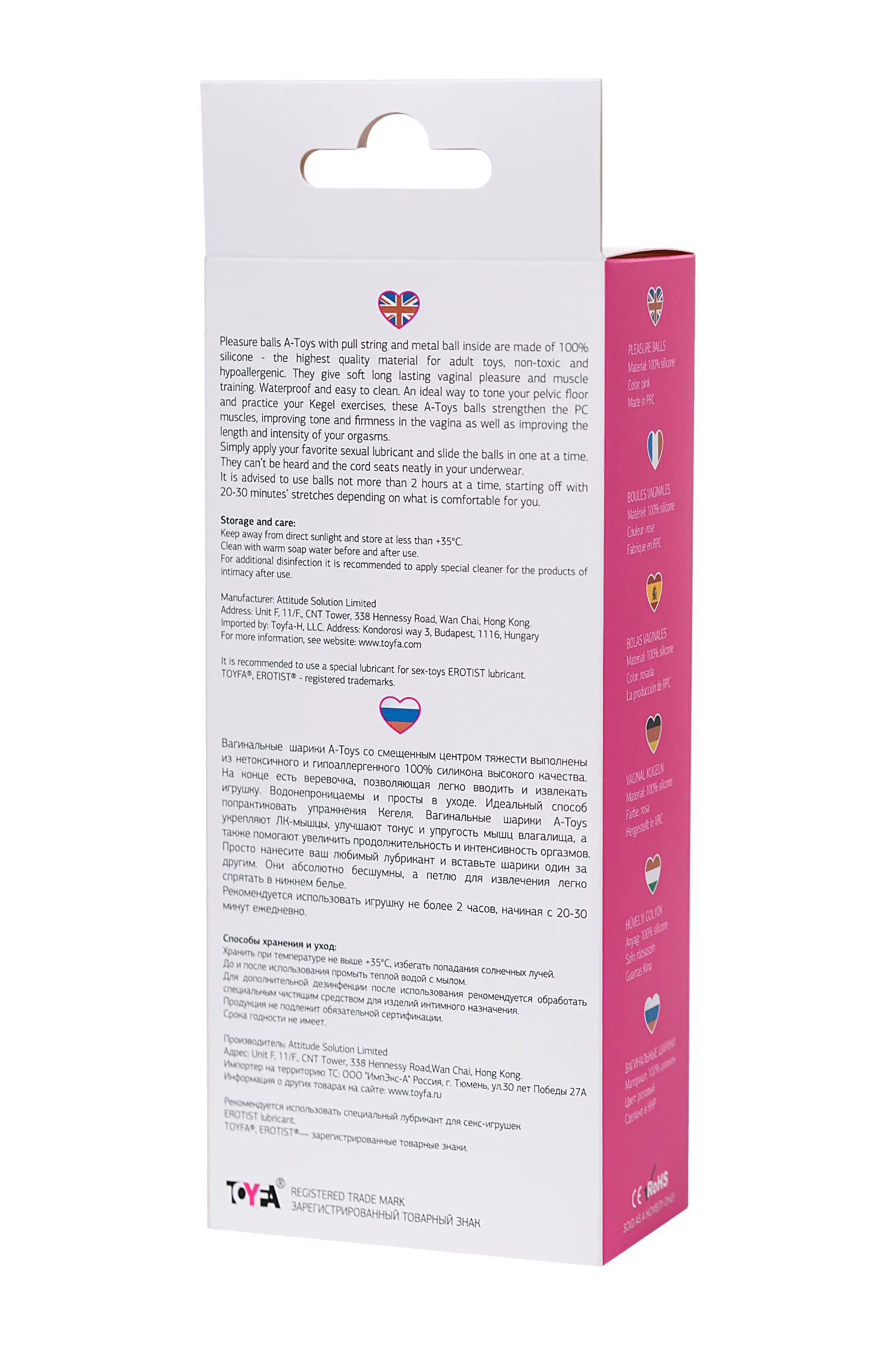 Вагинальные шарики A-Toys Rai со смещенным центром тяжести выполнены из нетоксичного и гипоаллергенного 100% силикона высокого качества. На конце есть веревочка, позволяющая легко вводить и извлекать игрушку. Водонепроницаемы и просты в уходе. Идеальный способ попрактиковать упражнения Кегеля. Вагинальные шарики А-Toys укрепляют ЛК-мышцы, улучшают тонус и упругость мышц влагалища, а также помогают увеличить продолжительность и интенсивность оргазмов. Просто нанесите ваш любимый лубрикант и вставьте шарики один за другим. Они абсолютно бесшумны, а петлю для извлечения легко спрятать в нижнем белье. Рекомендуется использовать игрушку не более 2 часов, начиная с 20-30 минут ежедневно.